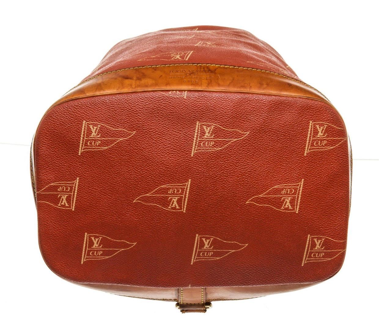 Louis Vuitton Red Leather Saint Tropez Cup Shoulder Bag with leather, gold-tone hardware, trim tan vachetta leather, interior slip pocket, shoulder strap and drawstring closure.