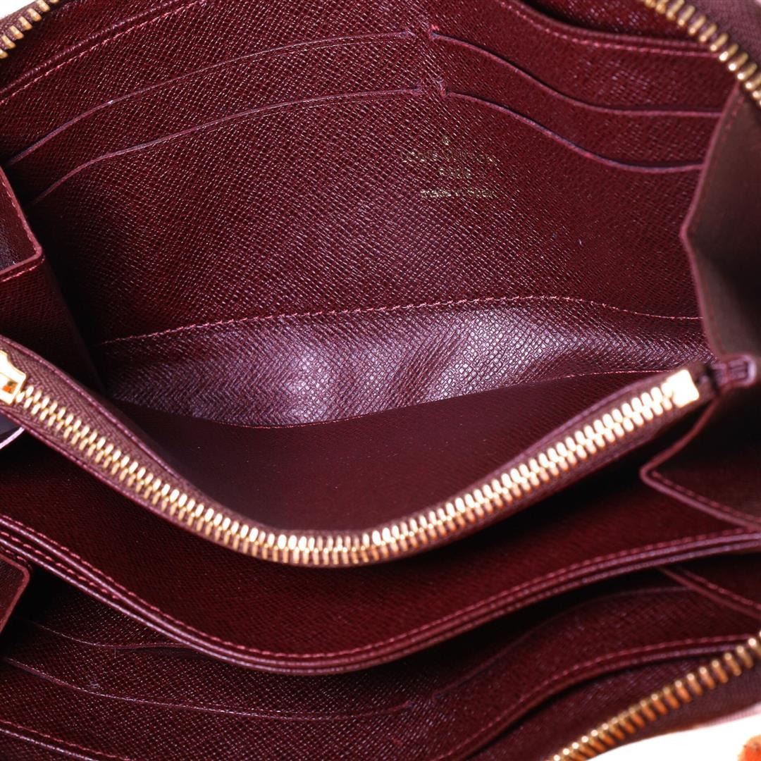 Louis Vuitton Red Monogram Mini Lin Canvas Zippy Wallet Condition Details: Darkening on exterior, wear on zipper pull, scratches on hardware. Measurements: Height 4", Width 7.5", Depth 1", Strap Drop -"