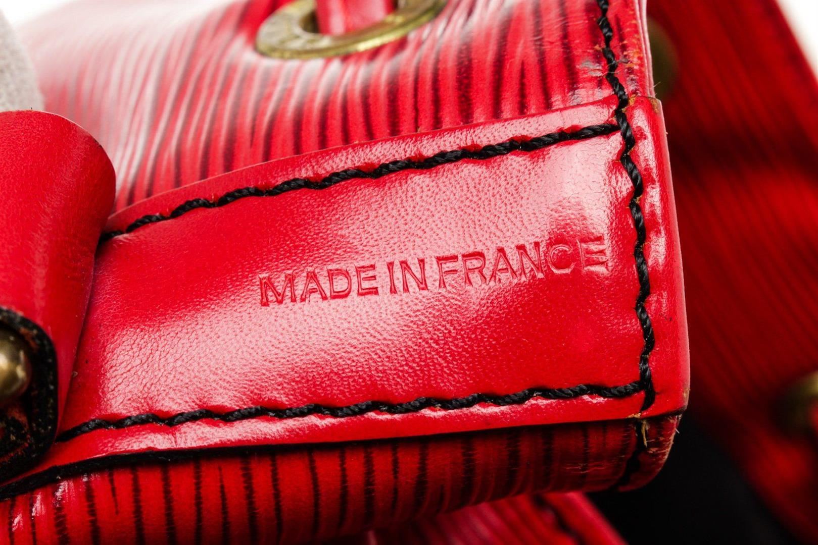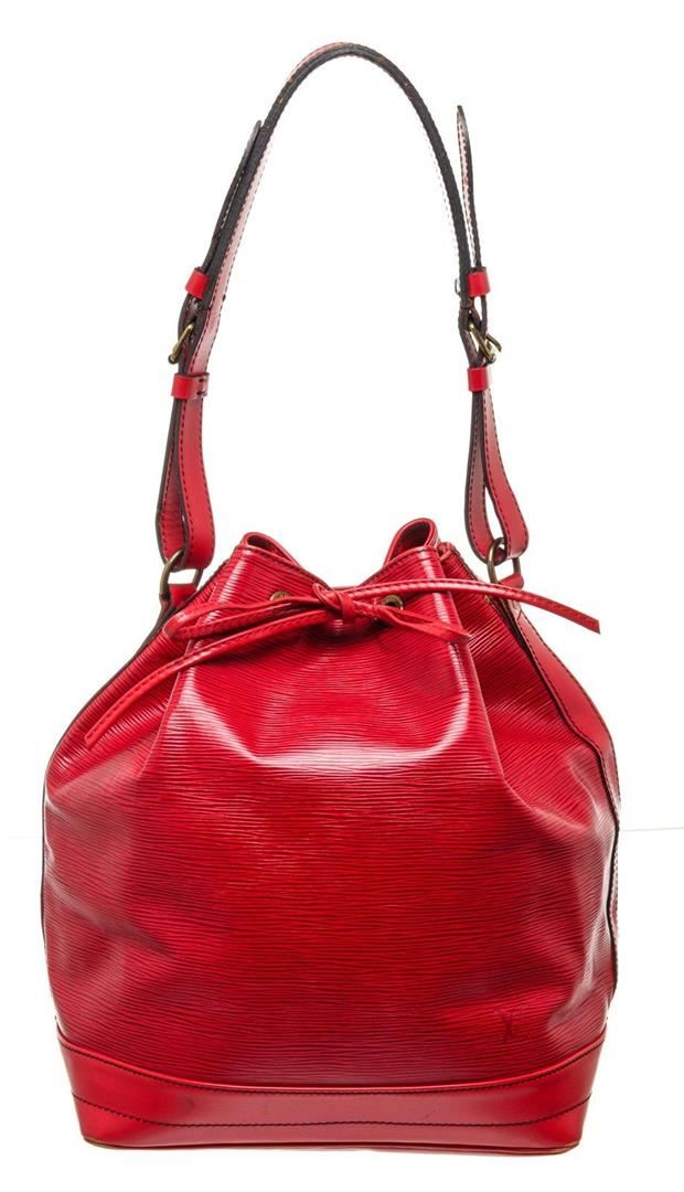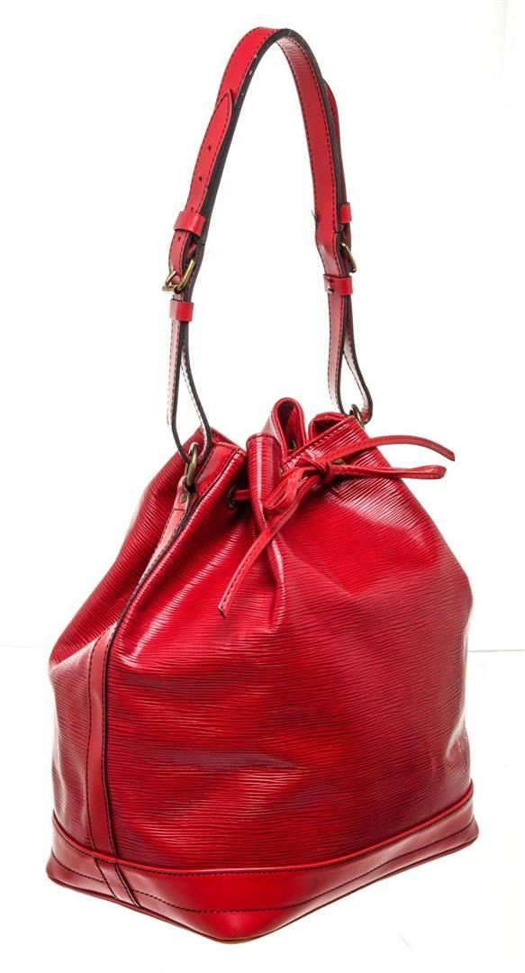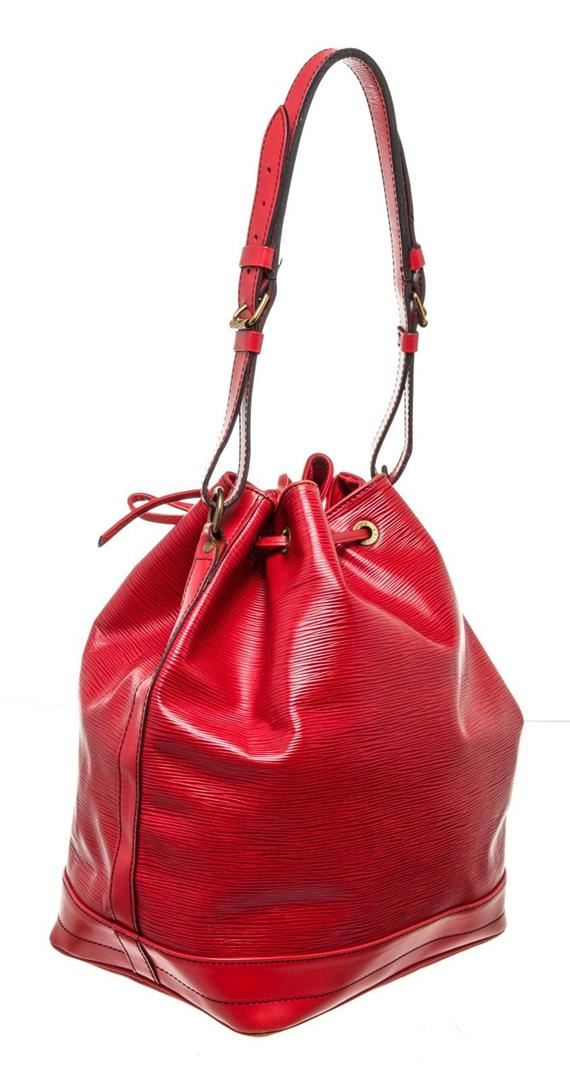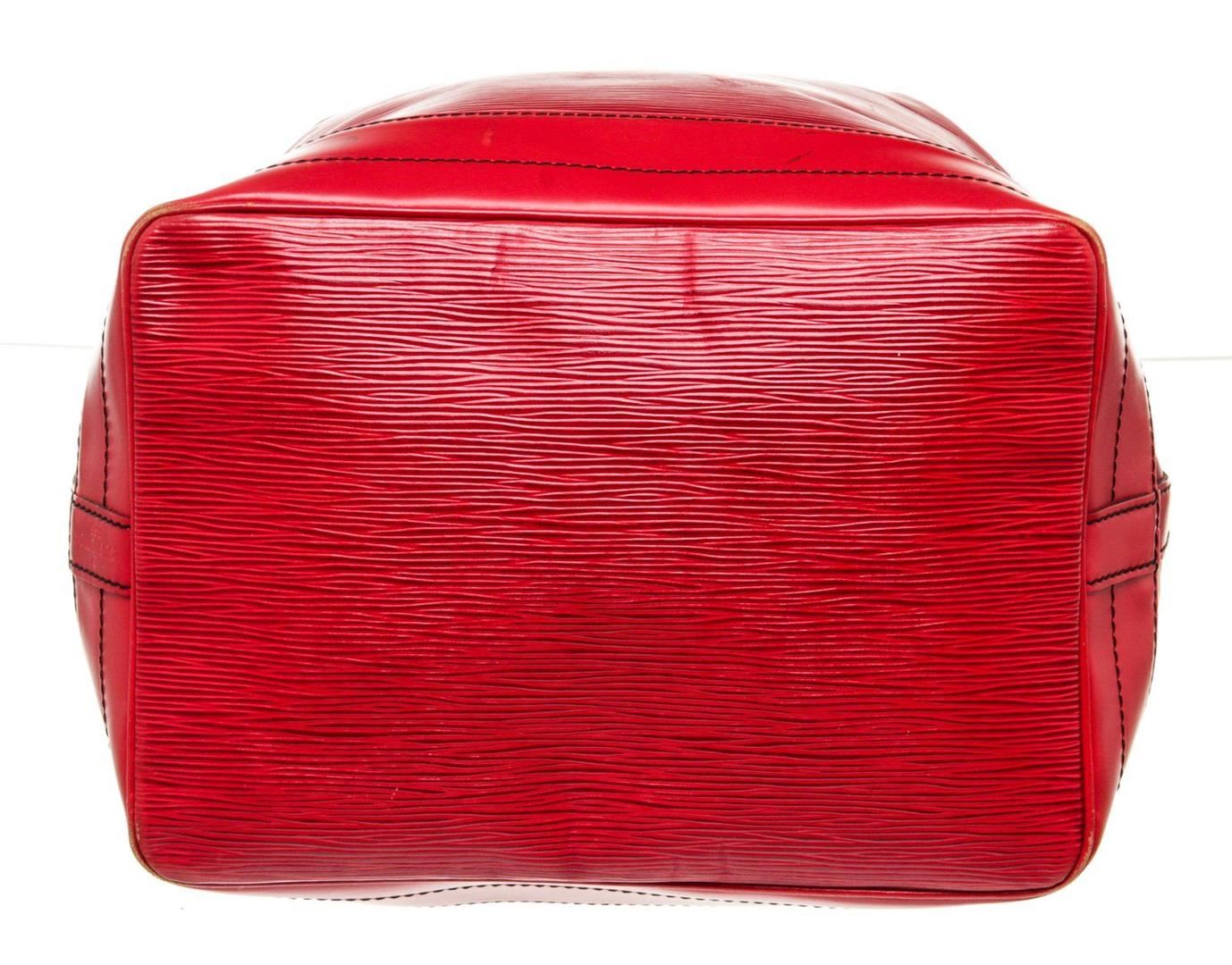 Louis Vuitton Red St. Jacques GM Bucket Bag with epi leather, gold-tone hardware, trim tan vachetta leather, shoulder strap and drawstring closure.