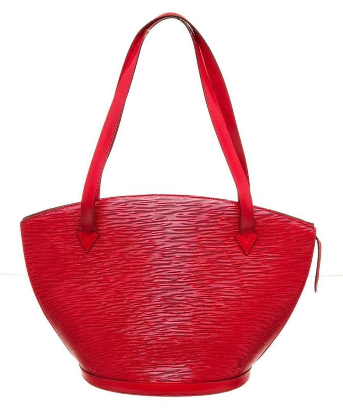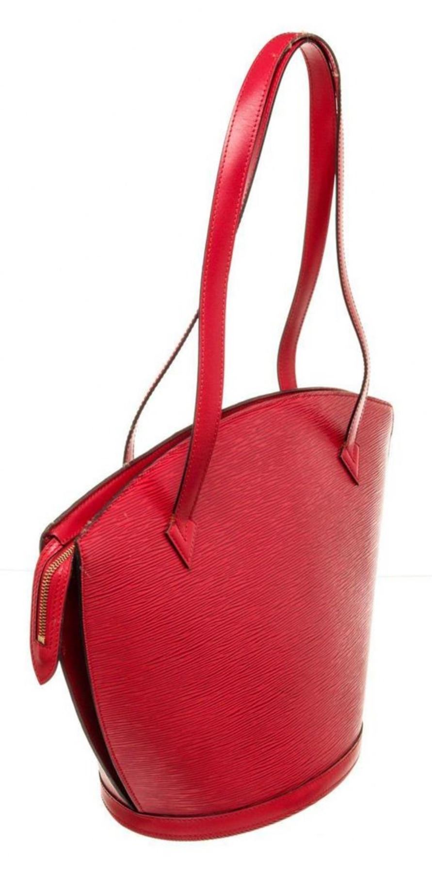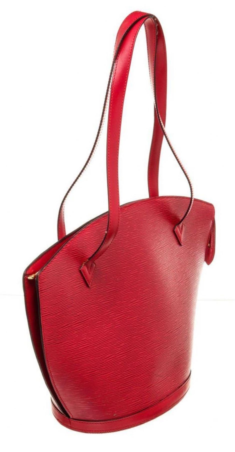 Louis Vuitton Red St. Jacques GM Tote Bag with epi leather, gold-tone hardware, interior slip pocket, dual top handles and zipper closure.