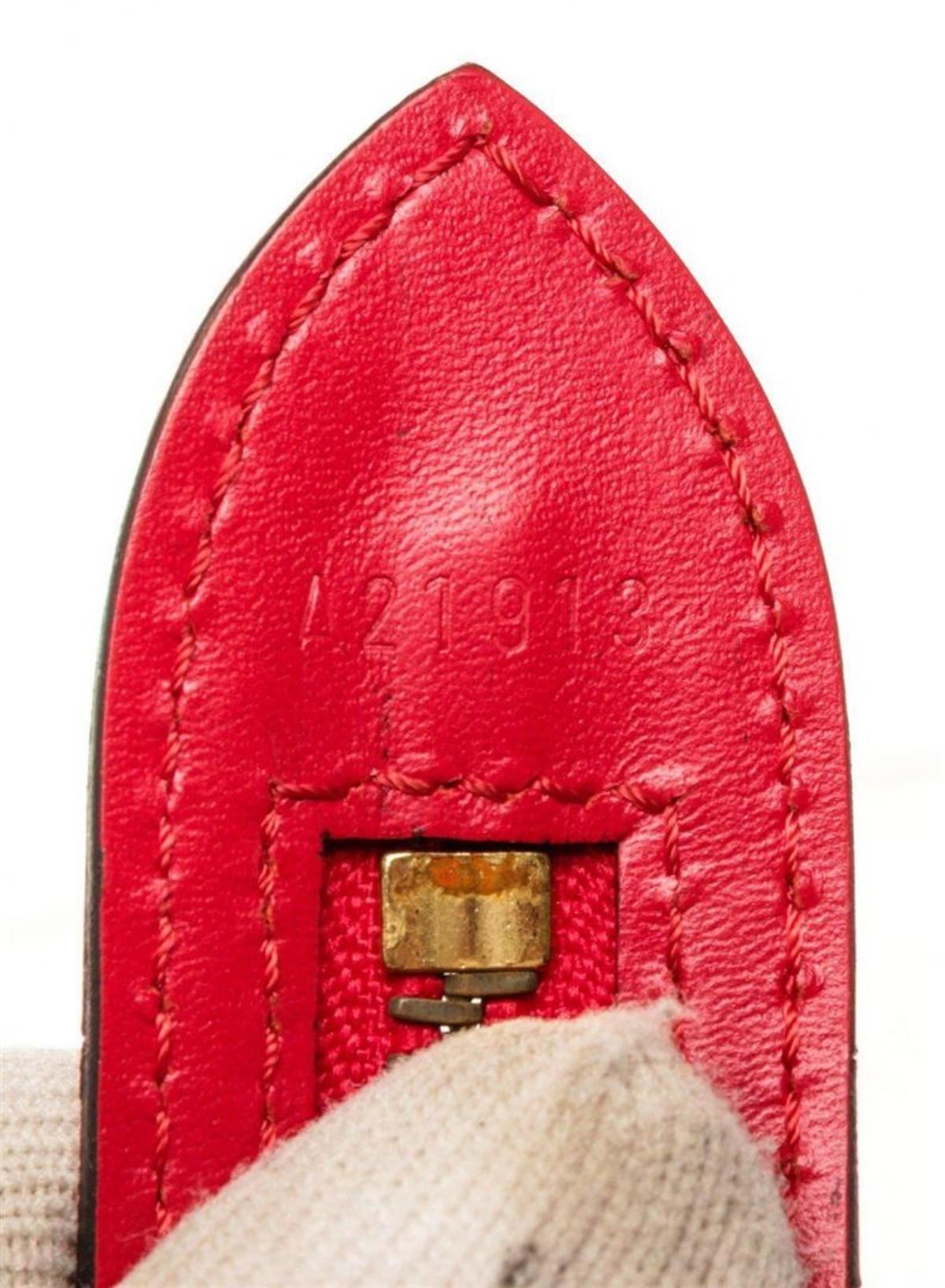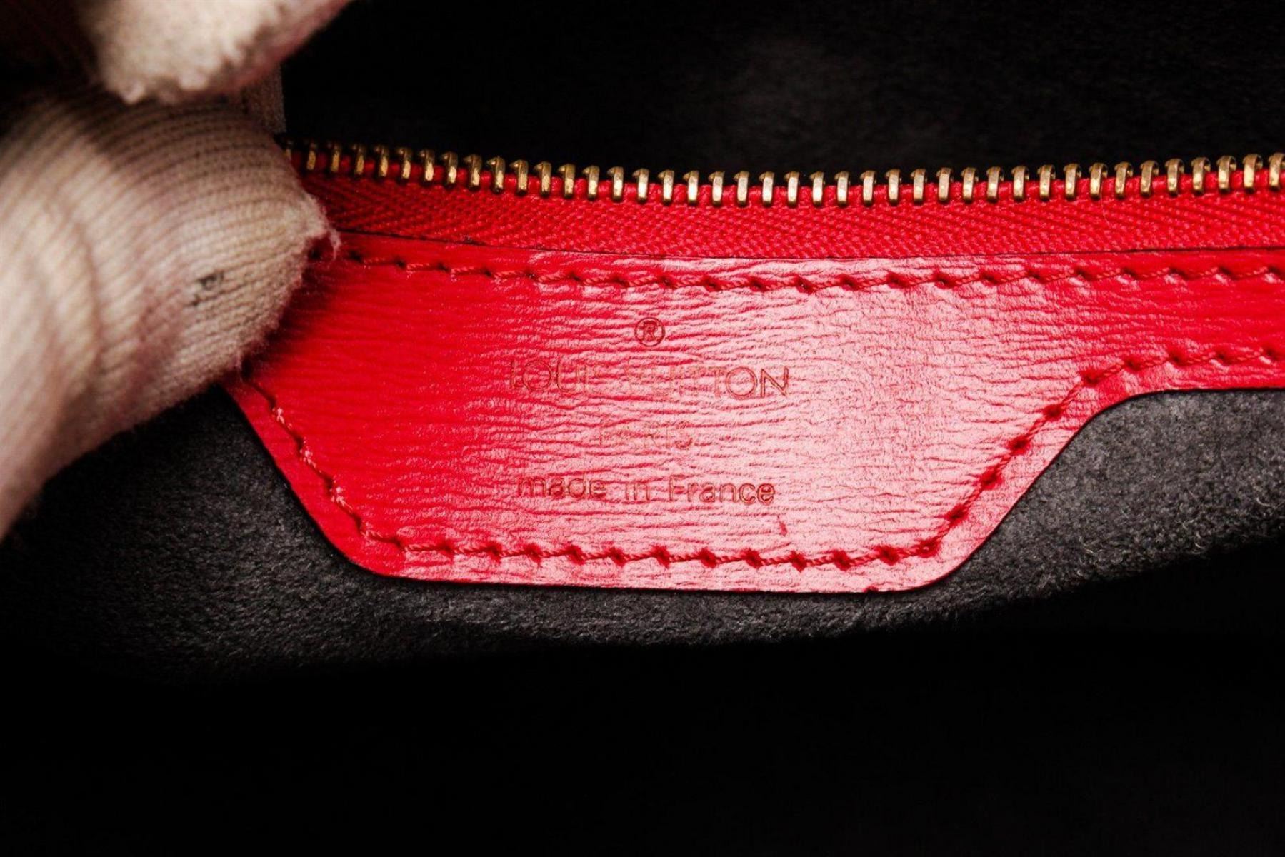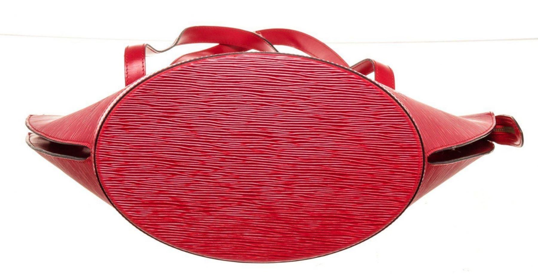 Louis Vuitton Red St. Jacques GM Tote Bag with epi leather, gold-tone hardware, interior slip pocket, dual top handles and zipper closure.