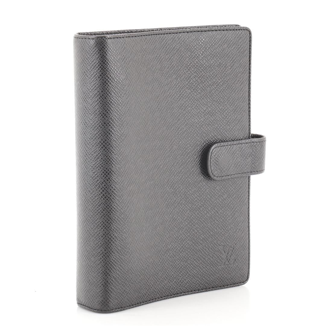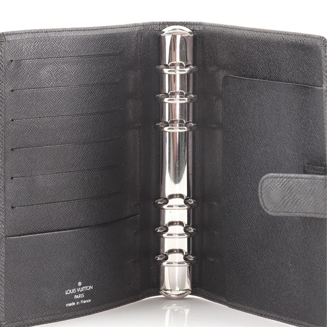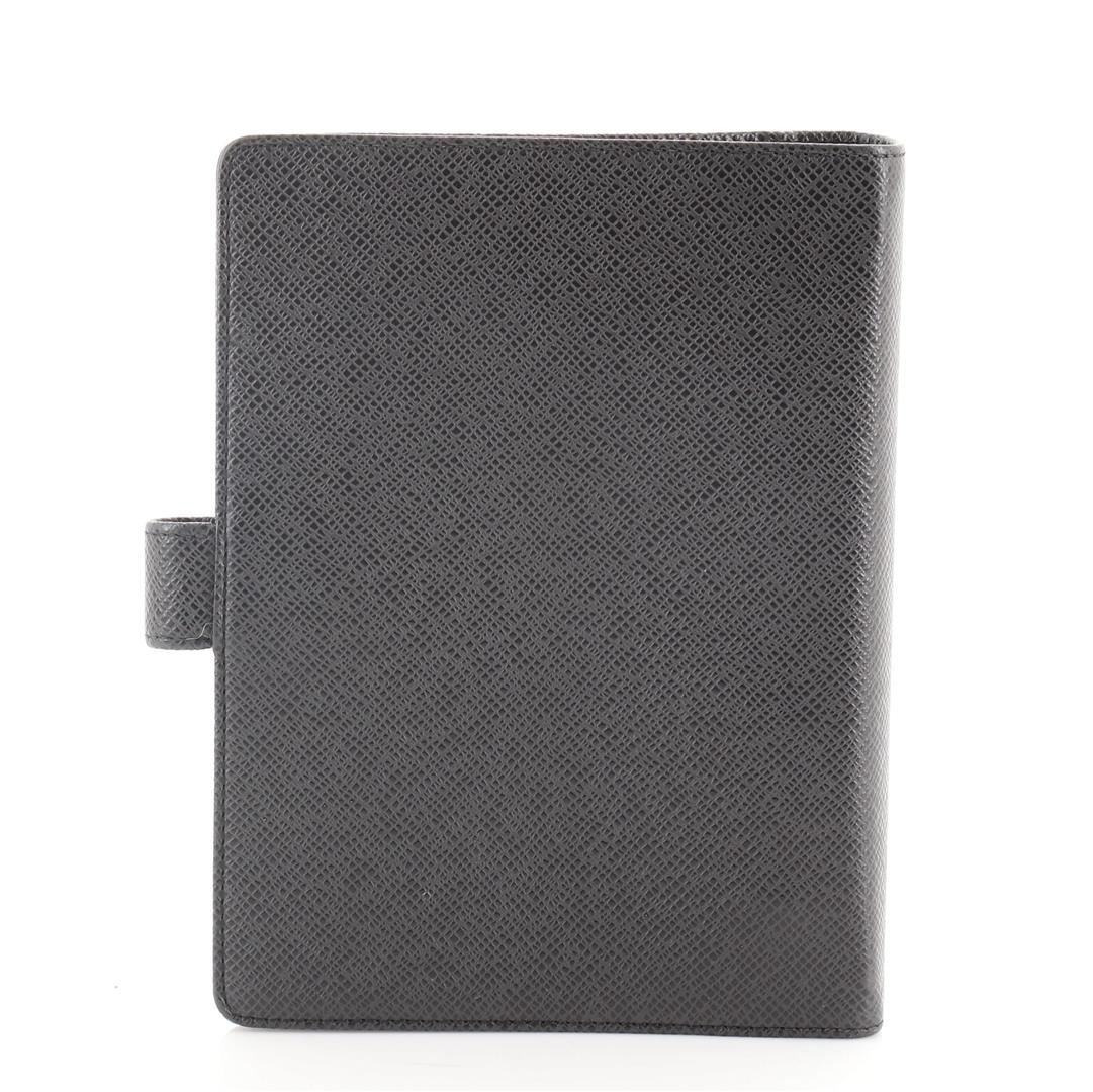 Louis Vuitton Ring Agenda Cover Taiga Leather MM Black Epi Leather