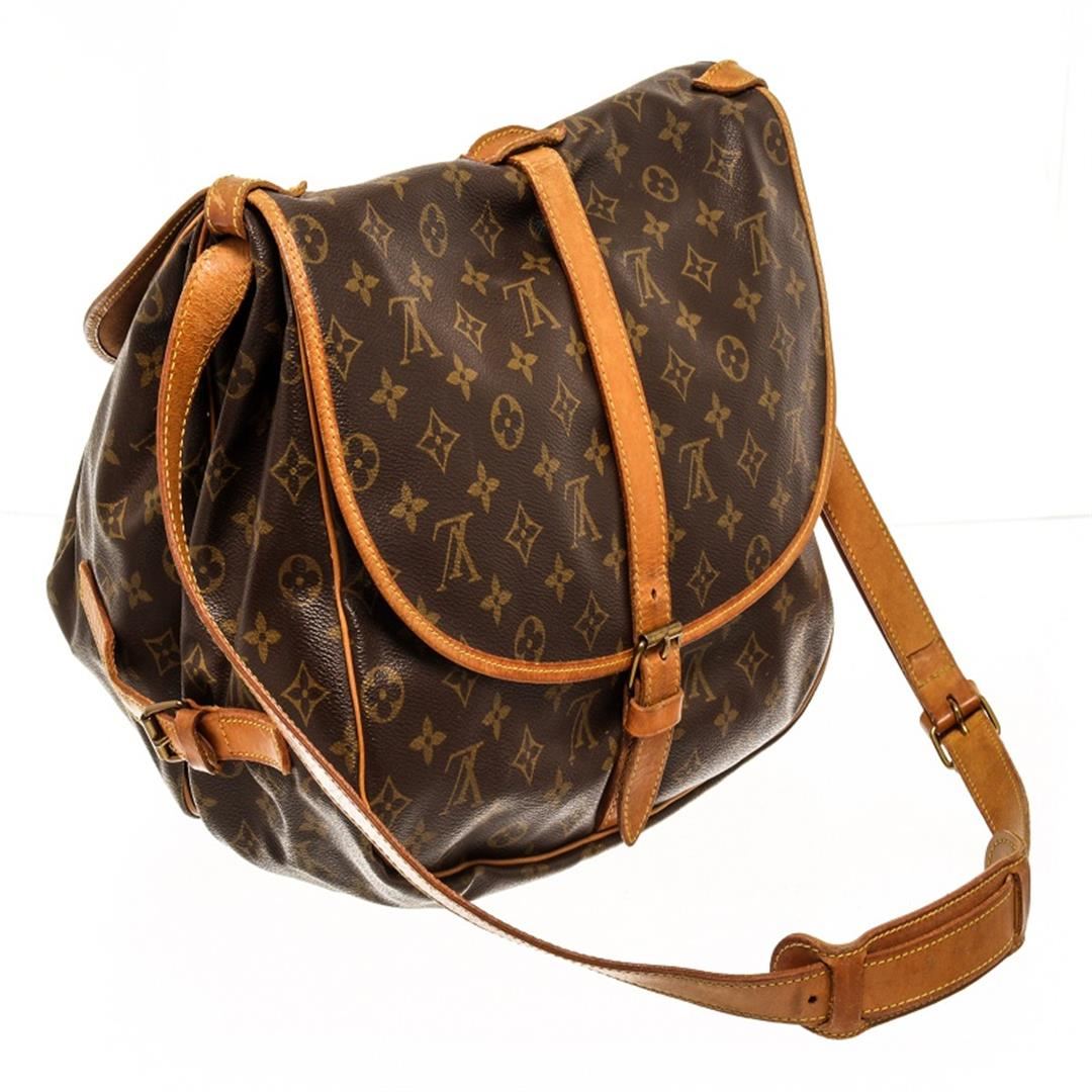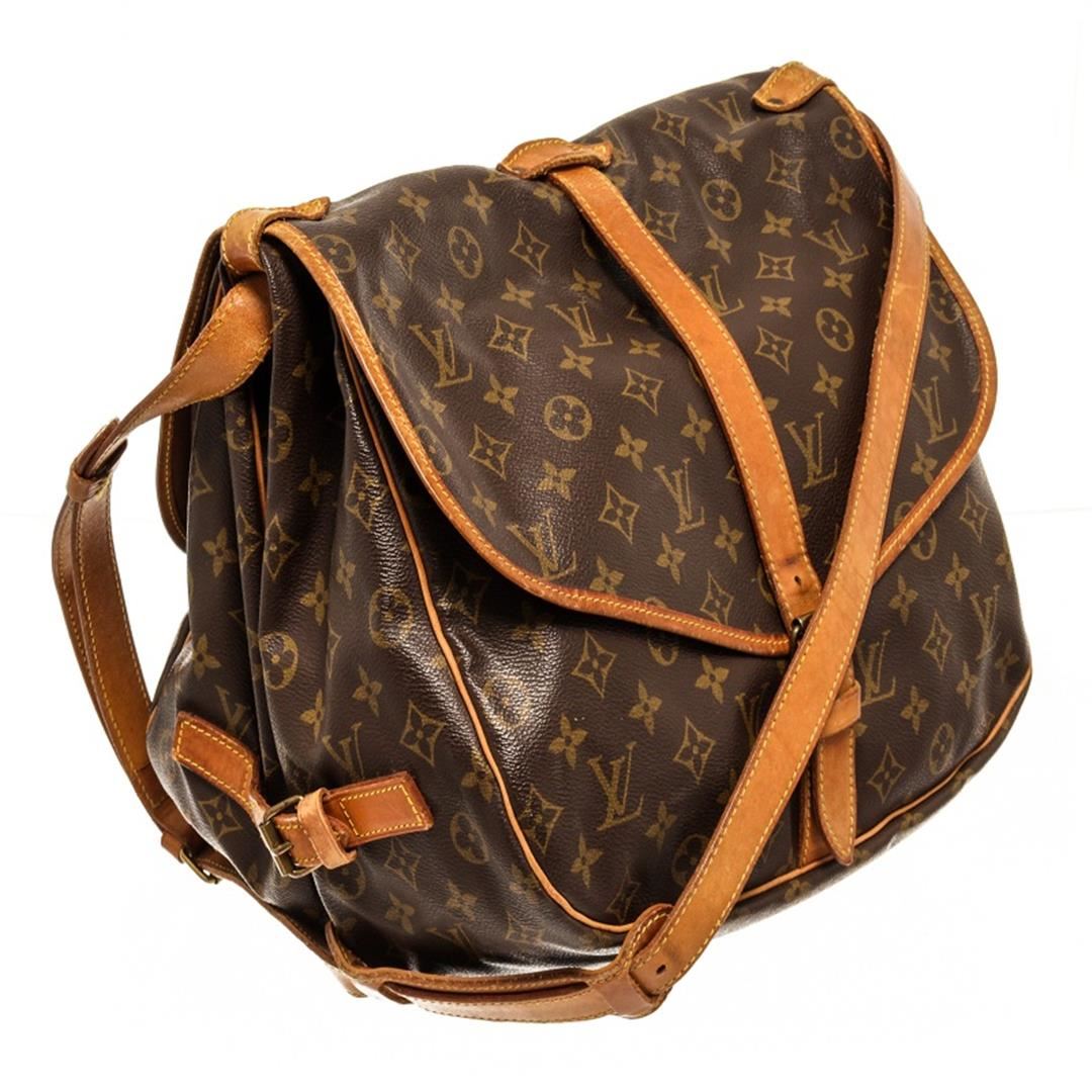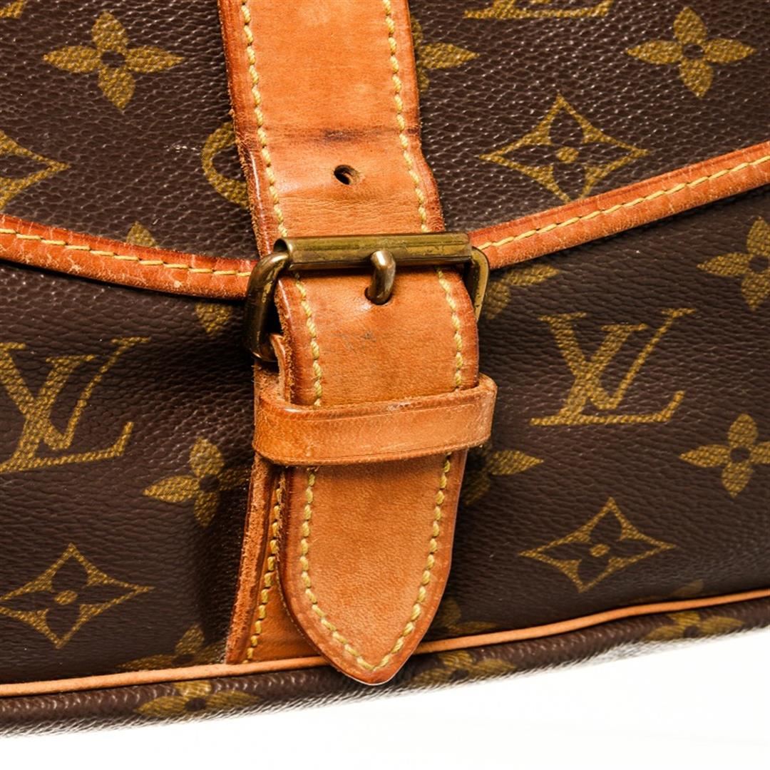 Louis Vuitton Saumur 35 Messenger Bag. Brand: Louis Vuitton, Style: Saumur 35, Type: Messenger Bag, Exterior color: Brown Monogram, Exterior material: Coated Canvas, Interior color: Brown, Interior material: Canvas, Length: 8, Width: 13, Height: 11.5. Ite