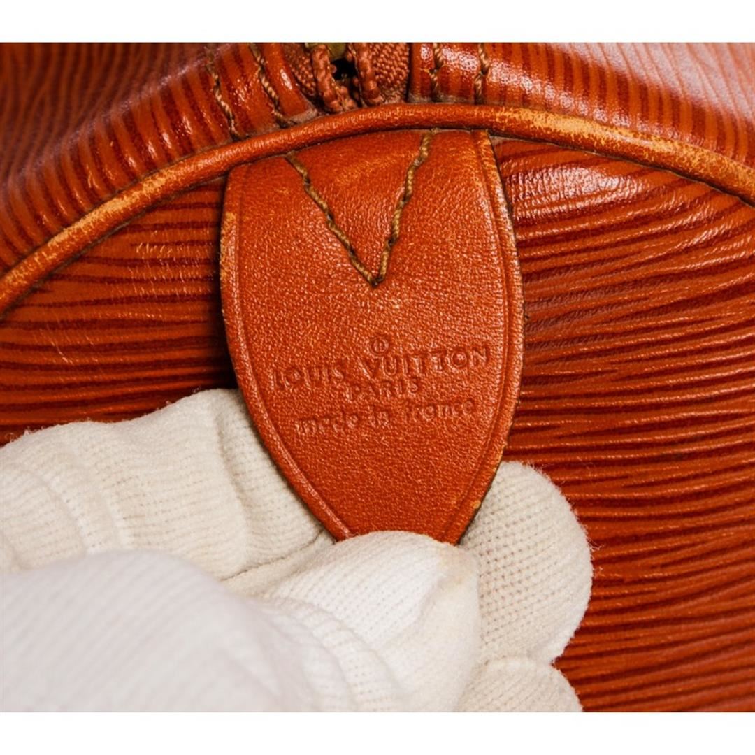 Sienna brown Epi leather Louis Vuitton Speedy 30 with brass hardware, dual rolled handles, embossed logo embellishment at front face, single slit pocket at exterior, tonal canvas lining, single slit pocket at interior wall and zip closure at top. Item is pre-owned.