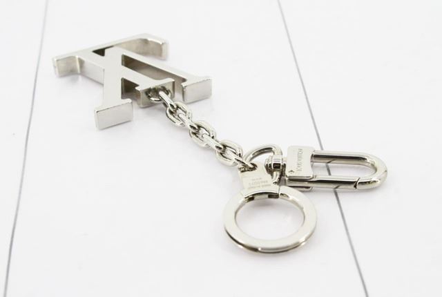 Men's silver-tone Louis Vuitton Initiales Facettes keyholder with silver-tone hardware. Length: 5.5" Width: 1.75"