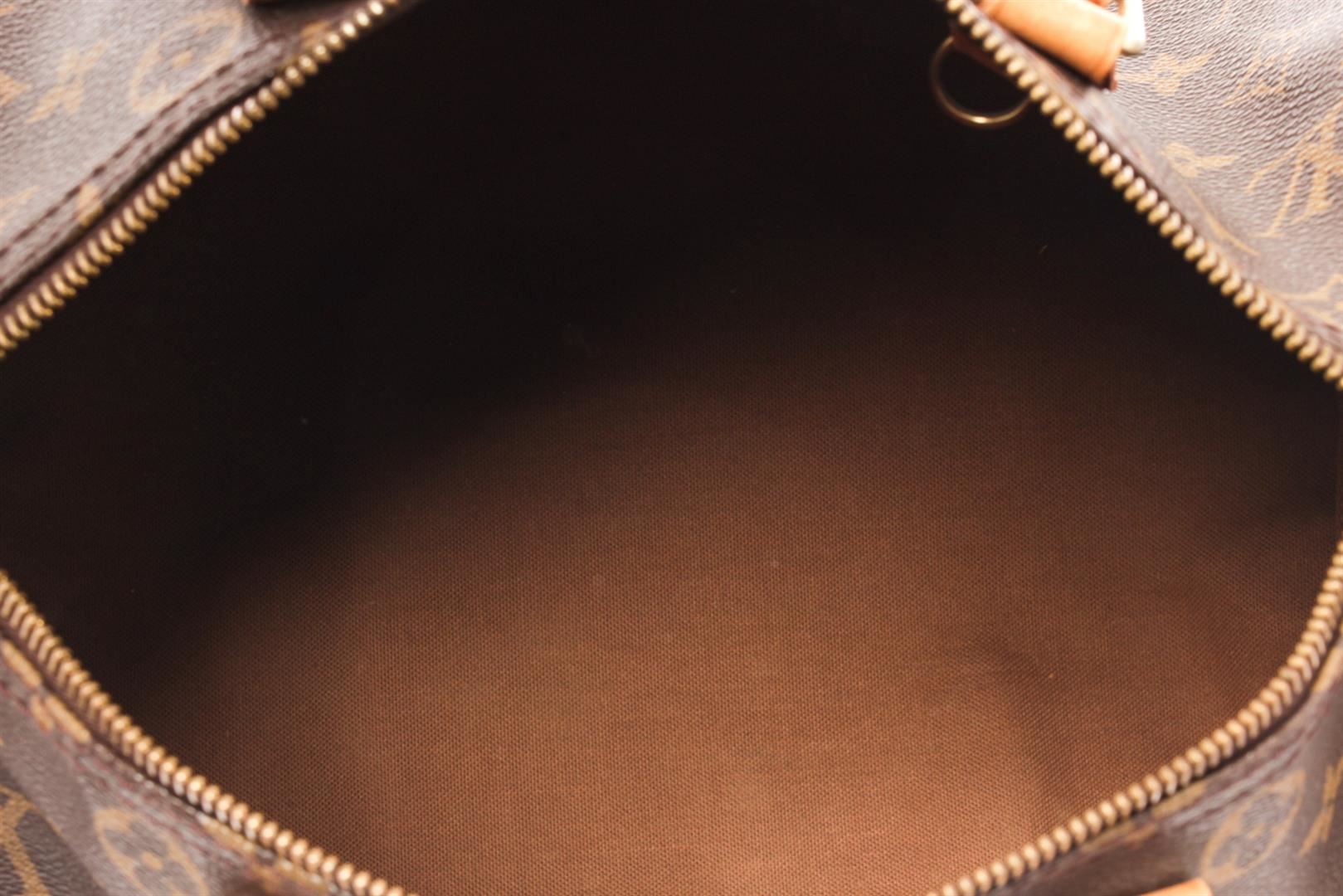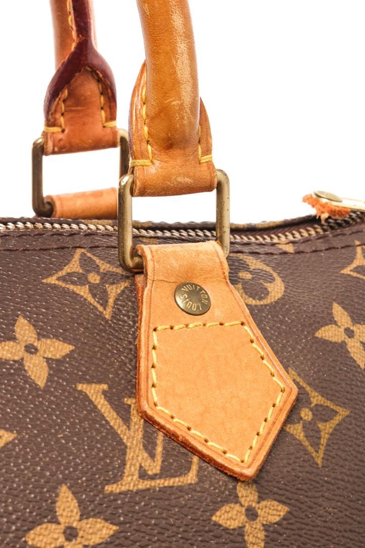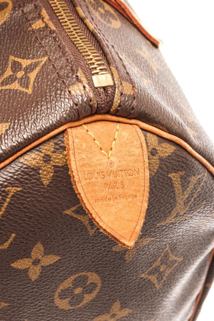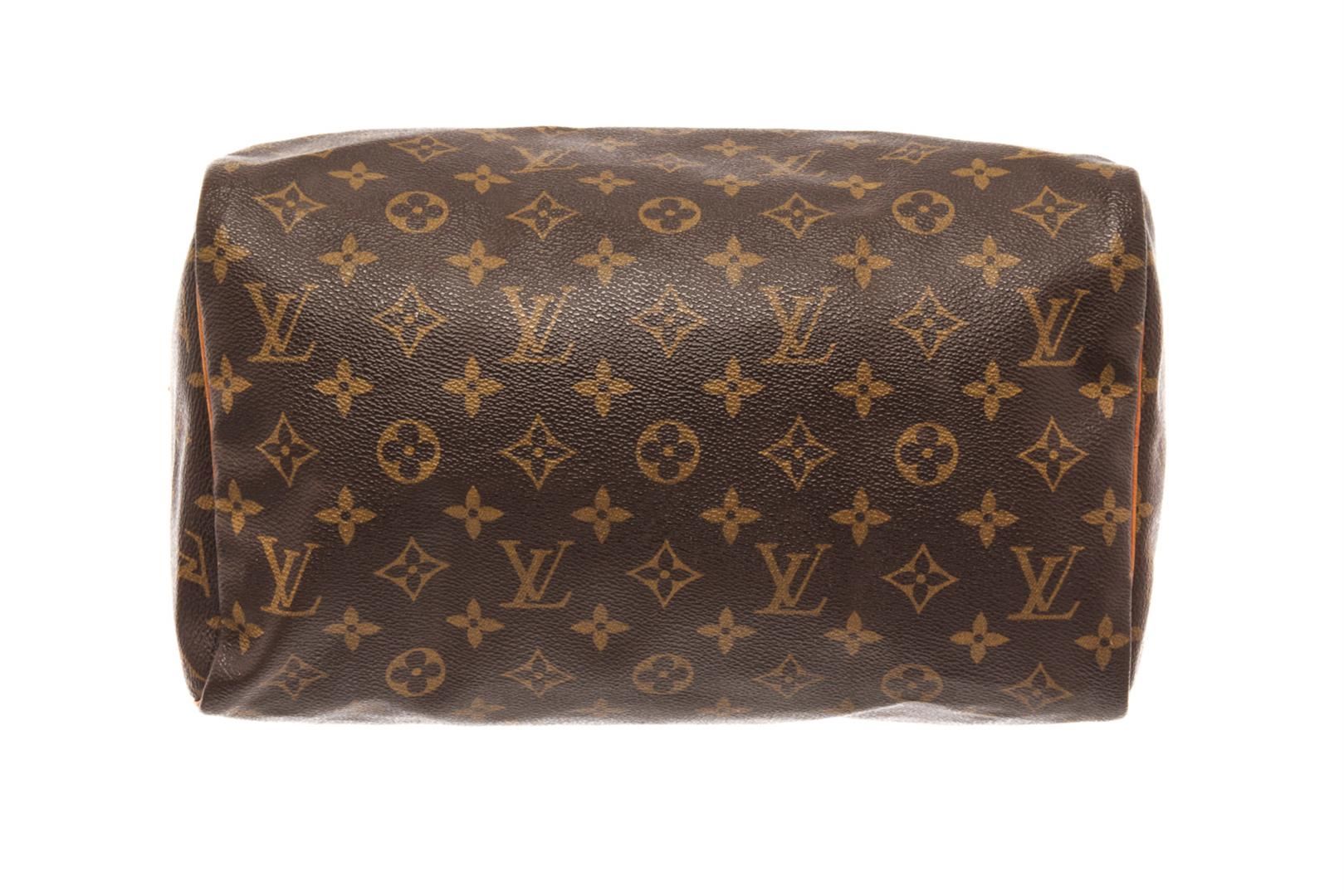 Louis Vuitton Speedy 30 Boston Bag. Brand: Louis Vuitton, Style: Speedy 30, Type: Boston Bag, Exterior color: Brown Monogram, Exterior material: Coated Canvas, Interior color: Brown, Interior material: Canvas, Length: 11.8, Width: 6.7, Height: 8.3. Item i