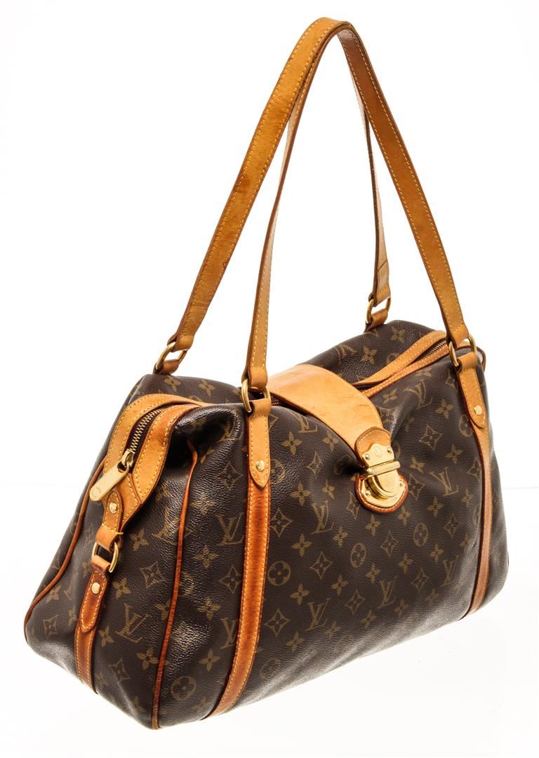One Louis Vuitton Stresa MM. Item is sold AS-IS. All available information is listed in the description and shown in the photo. Louis Vuitton Stresa MM with vachetta top handle, zipper closure, gold-toned hardware, and brown fabric lining.