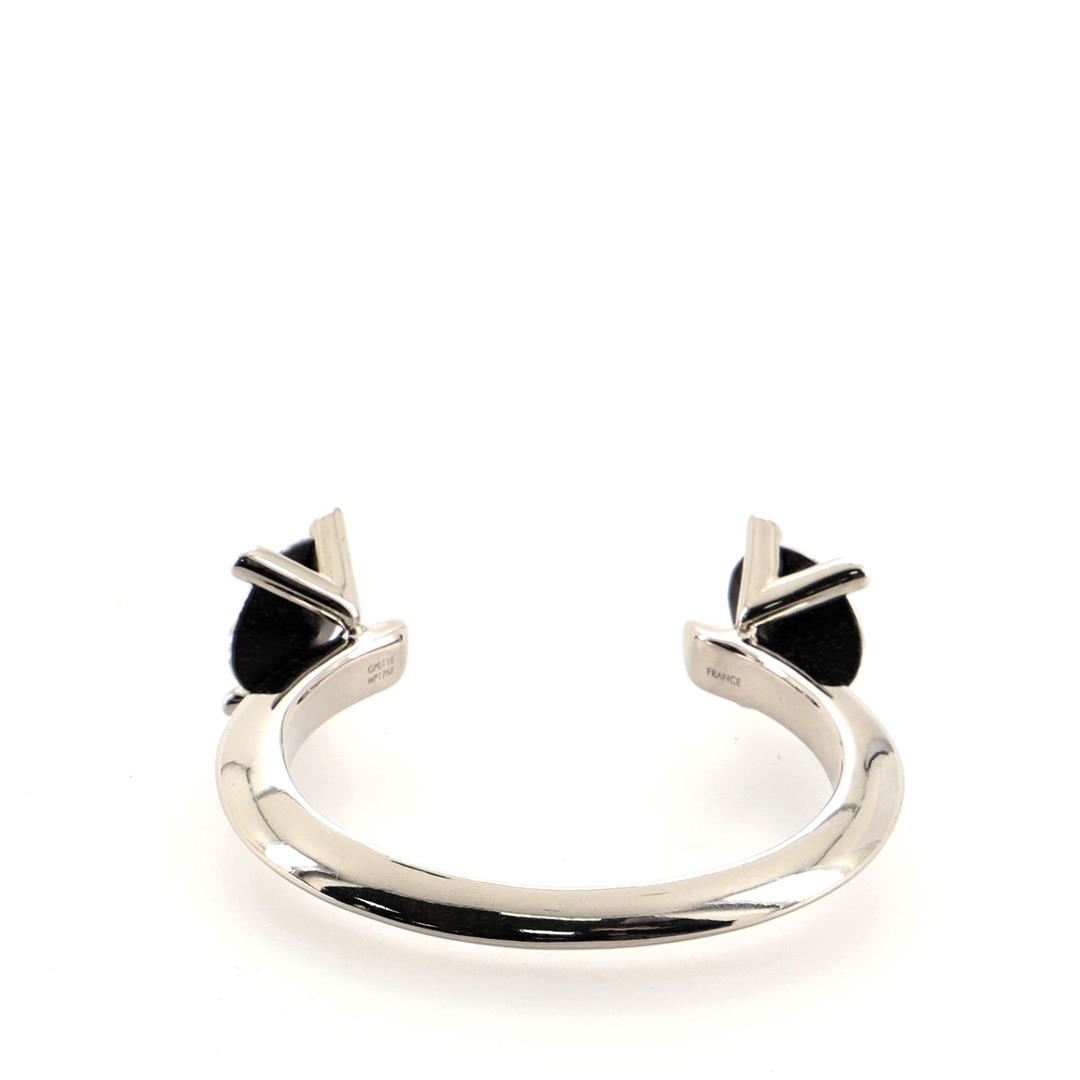 One Louis Vuitton V Cuff Metal with Crystals Silver. Item is sold AS-IS. All available information is listed in the description and shown in the photo. Louis Vuitton V Cuff Metal with Crystals Silver