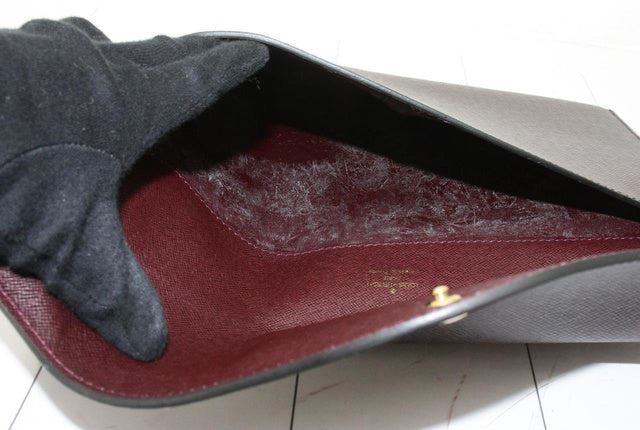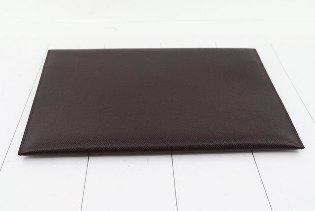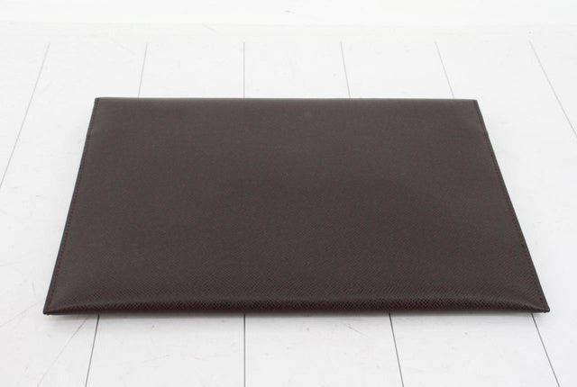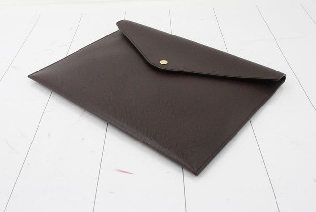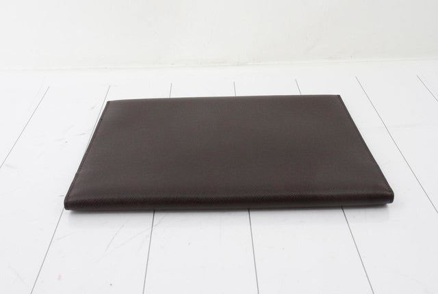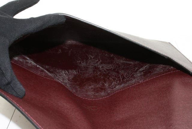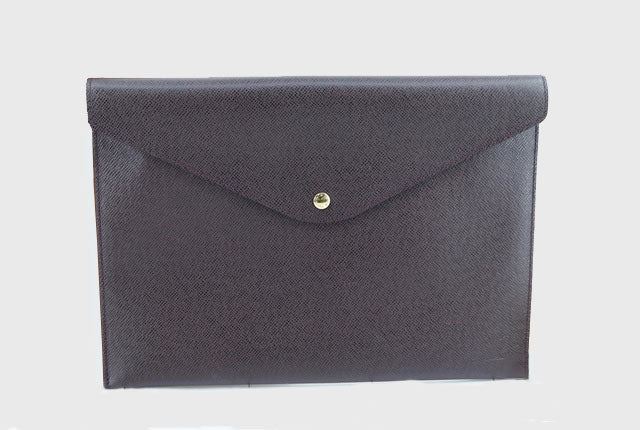 Black Taiga leather Louis Vuitton Vintage Document Case clutch bag with gold-tone hardware, front flap with button clasp closure and red leather lining. 35 cm x 25 cm x 1 cm