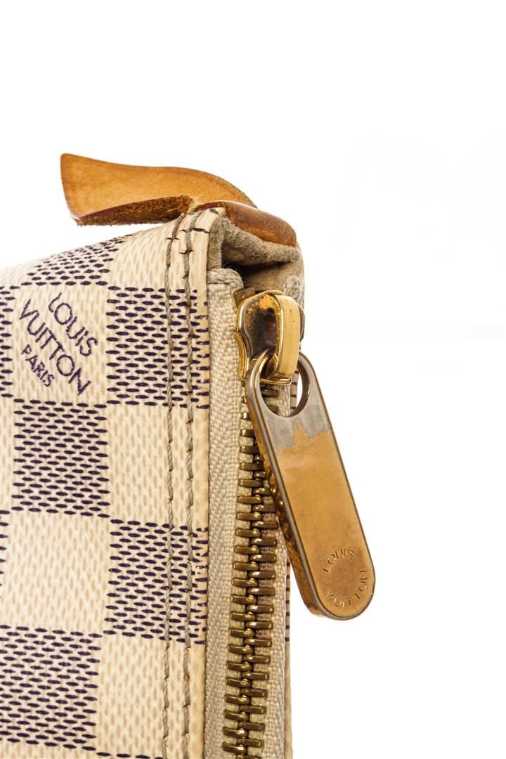 Louis Vuitton White Damier Azur Saleya PM Shoulder Bag. All available information is listed in the description and shown in the photos. Louis Vuitton White Damier Azur Saleya PM Shoulder Bag with leather trim, two top handles, top zip fastening, main compartment, internal slip pocket, gold-tone hardware. Depth 5.3 in, Handle 5.5 in, Height 9.1 in, Width 13.8 in / 13.46 x 23.11 x 35.05 CM, Handle: 13.97 CM