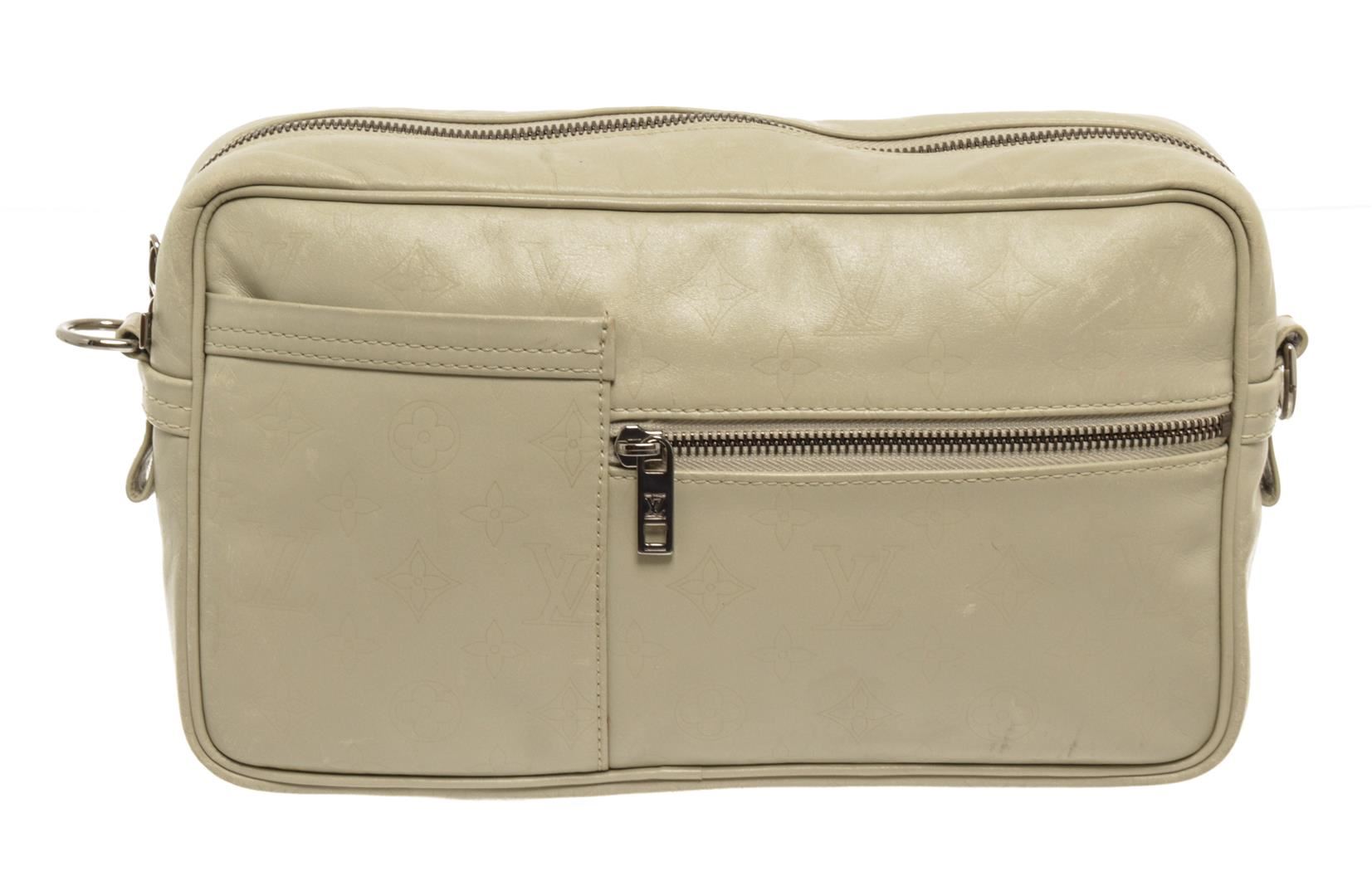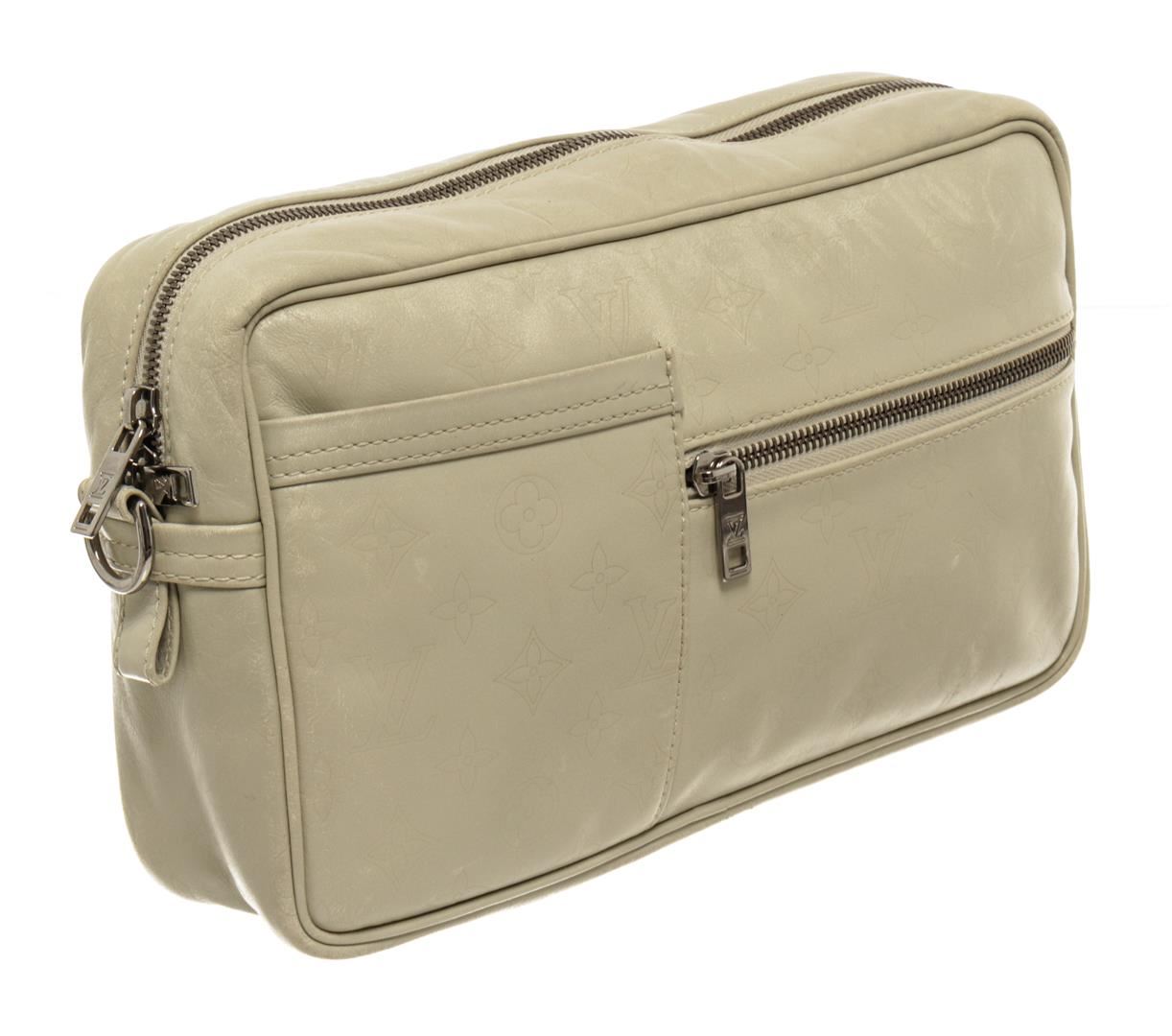 One Louis Vuitton White Monogram Defile Leather Irvington Shoulder Bag. Item is sold AS-IS. Please check photos and descriptions for all available details. Louis Vuitton White Monogram Defile Leather Irvington Shoulder Bag with silver-tone hardware, two exterior pockets with zip closure and slip pocket, white suede lining, two interior slip pockets, with adjustable white shoulder strap, and zip closure.