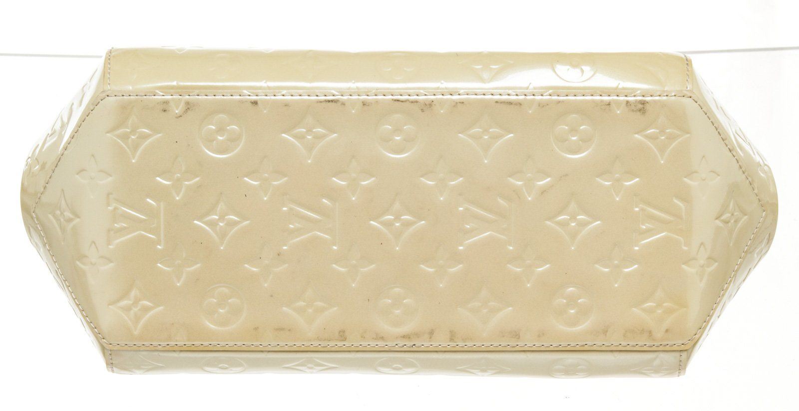 Louis Vuitton White Monogram Vernis Rosewood Shoulder Bag with monogram vernis , gold-tone hardware, trim tan vachetta leather, interior slip pocket, canvas lining, dual top handle and zipper closure.
