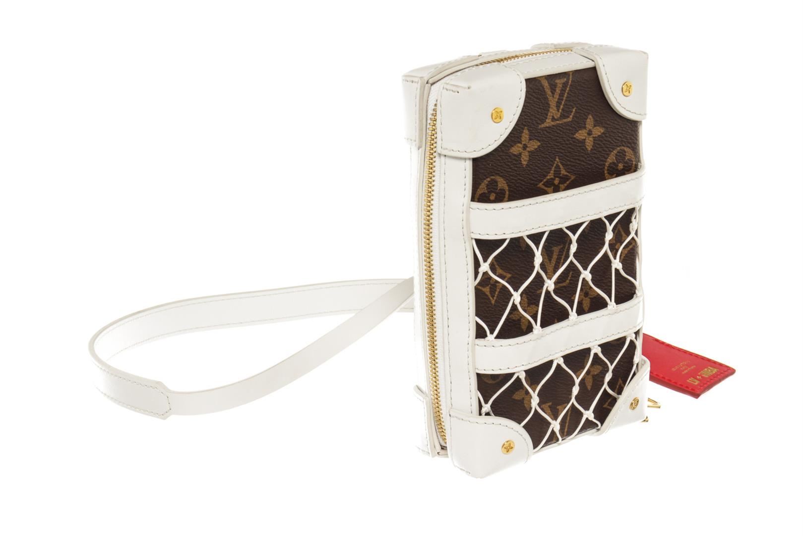 Louis Vuitton X NBA Monogram Canvas Soft Trunk Phone Box bag in Monogram canvas with reinforced leather corners is ideal for transporting smaller items. Textile lining, cowhide leather trim, double zip closure system, inside flat pocket, 3 credit card slo