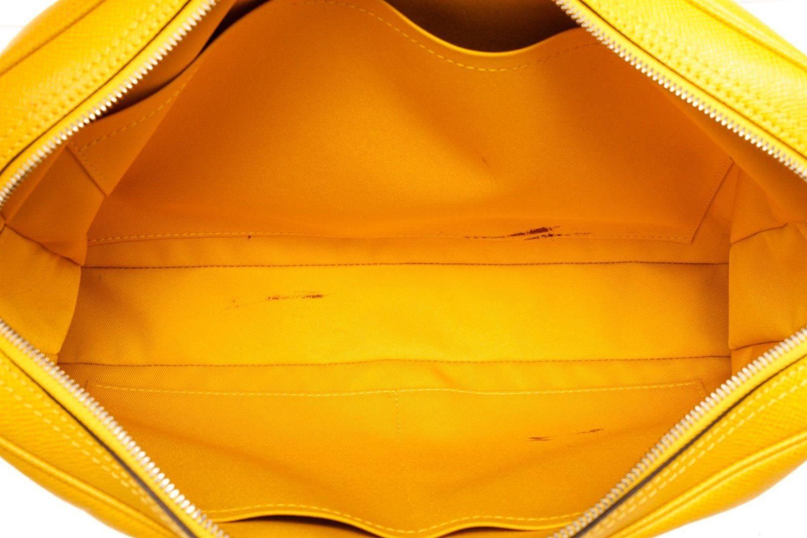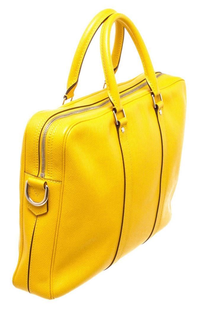 Louis Vuitton Yellow Porte Document Voyage Briefcases with leather gold-tone hardware, trim tan vachetta leather, interior three pocket, canvas lining, dual top handle and zipper closure.