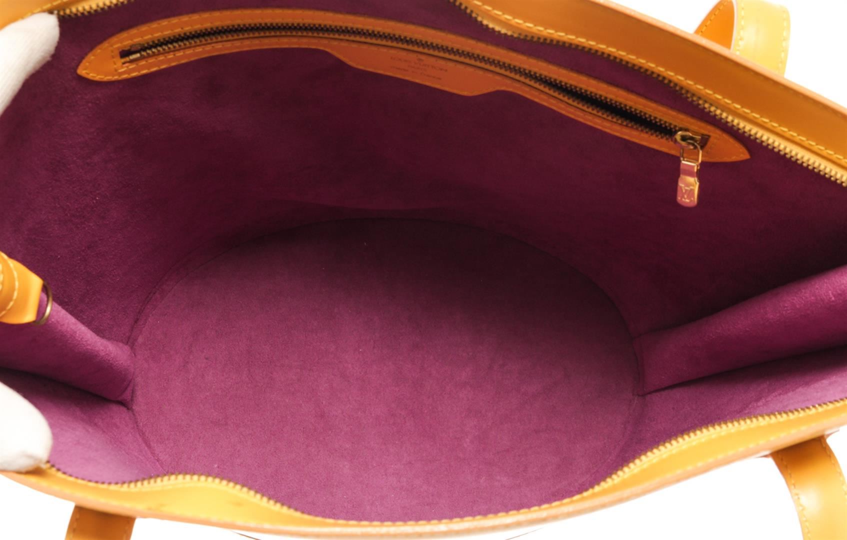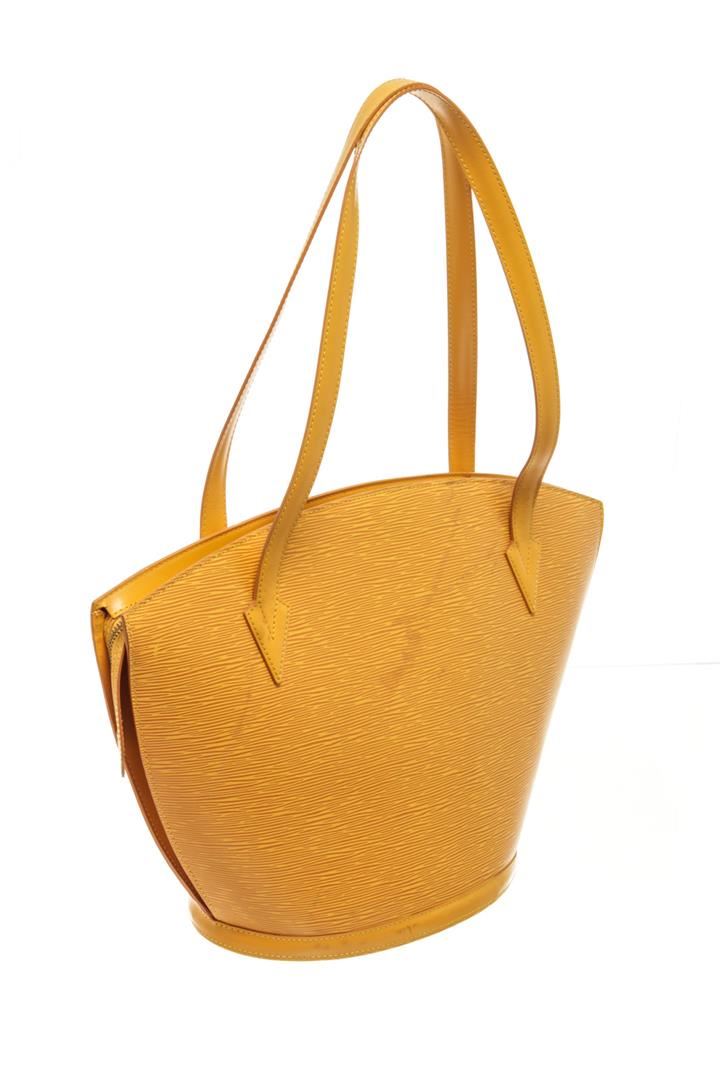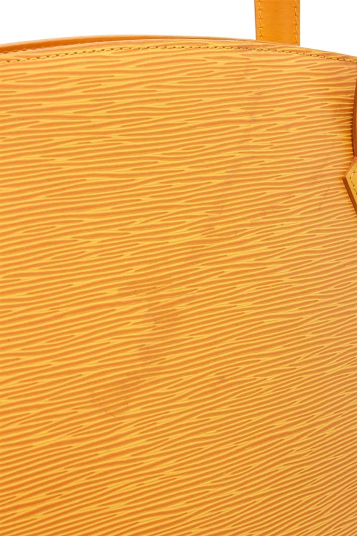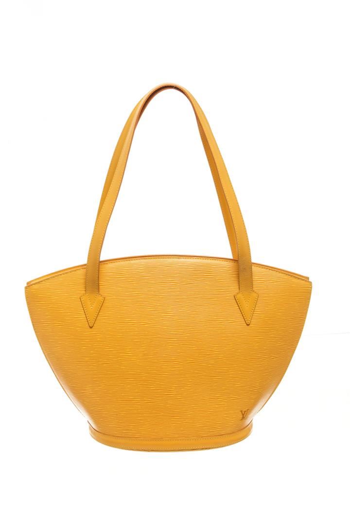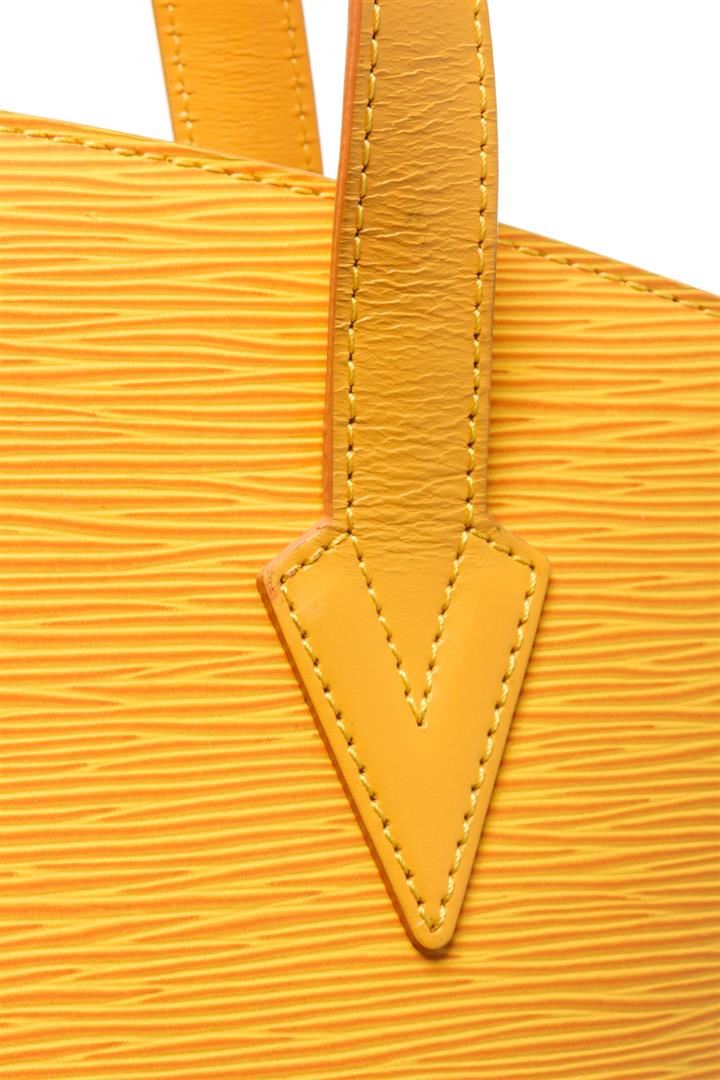 One Louis Vuitton Yellow Ã?pi Leather Saint Jacques Shoulder bag. Item is sold AS-IS. All available information is listed in the description and shown in the photo. Louis Vuitton Yellow ?pi Leather Saint Jacques Shoulder bag with gold-tone hardware, debossed logo to the front, top zip fastening two long top handles, internal logo patch, internal zip pocket, leather lining. Depth 5.9 in, Height 11.8 in, Strap 9.8 in, Width 10.2 in / Depth 15 cm, Height 30 cm, Strap 25 cm, Width 26 cm