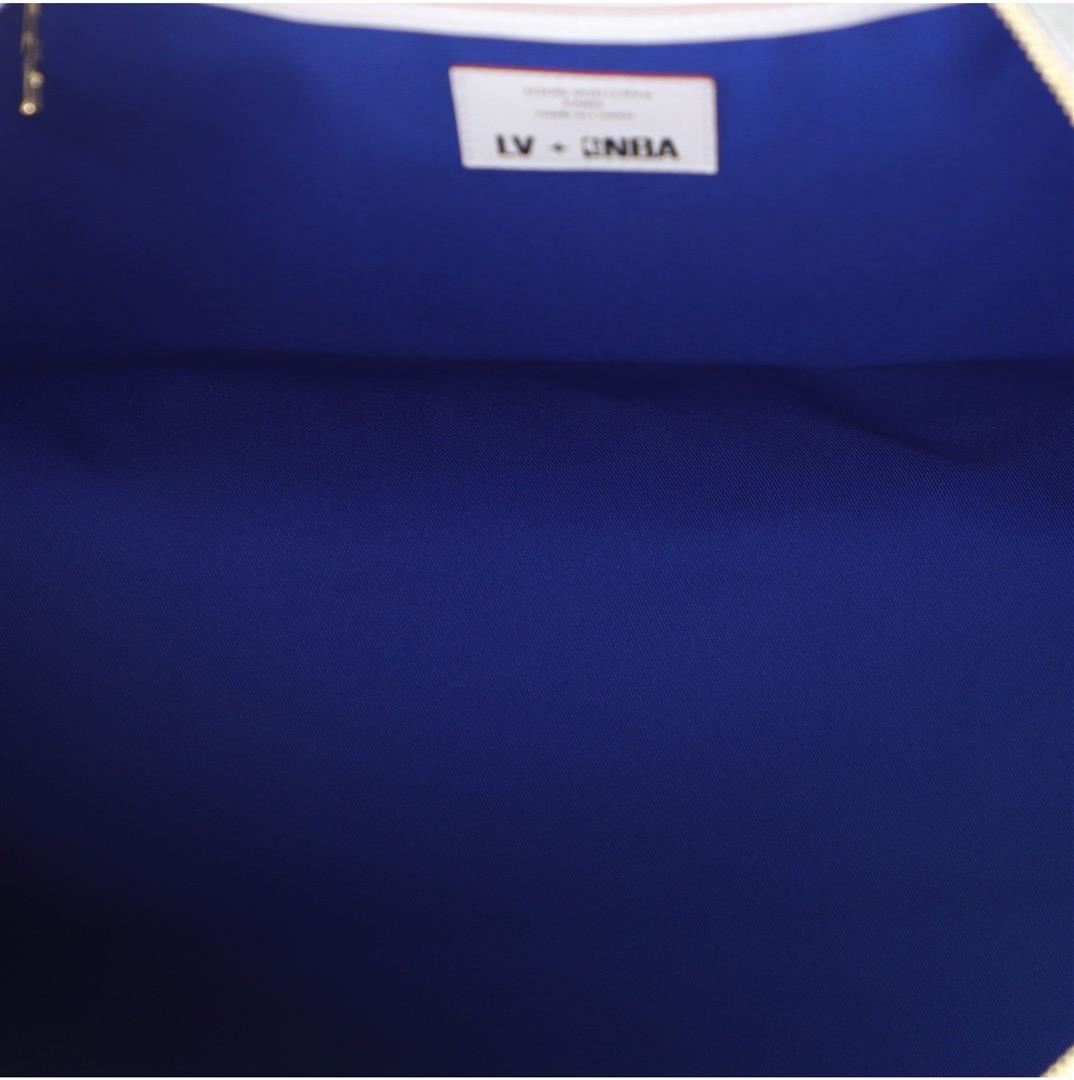 With an inside strap to hold a basketball, this Louis Vuitton x NBA Keepall Bandouliere 55 cm Travel Bag has a flap system that reveals the ball behind a mesh net when opened. It also features grey Monogram Antarctica coated canvas, gold-tone hardware, te
