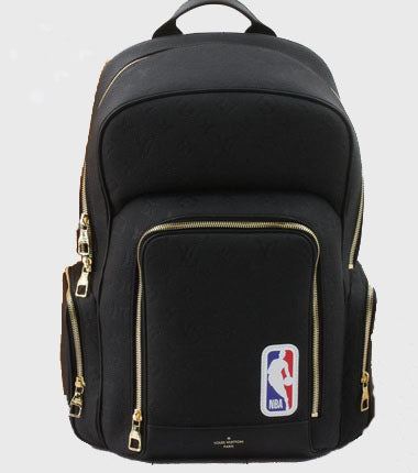 Black Empreinte leather Louis Vuitton x NBA Basketball backpack with gold-tone hardware, flat top handle dual adjustable shoulder straps, three exterior pockets, black grosgrain lining three interior pockets and zip closure at top. 6 HH