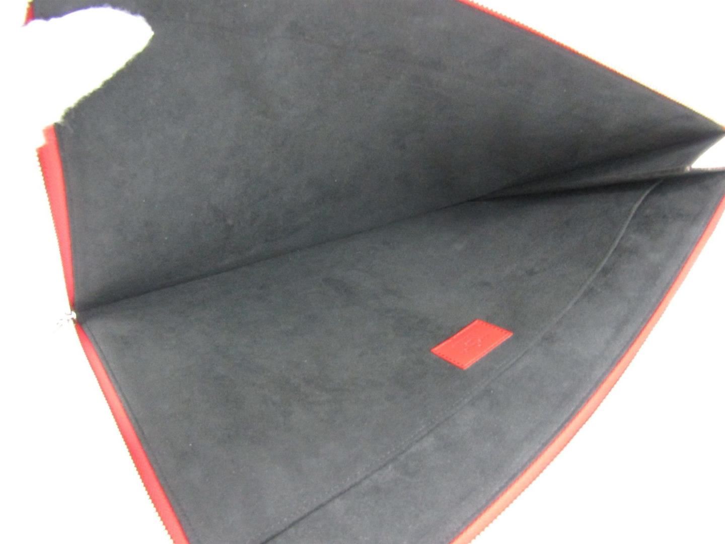 Louis Vuitton x Supreme Red Epi Leather Pochette Jules GM Clutch Bag features an excellent storage capacity that features a wide opening with a silver-tone zipper opening and a clean gusset.