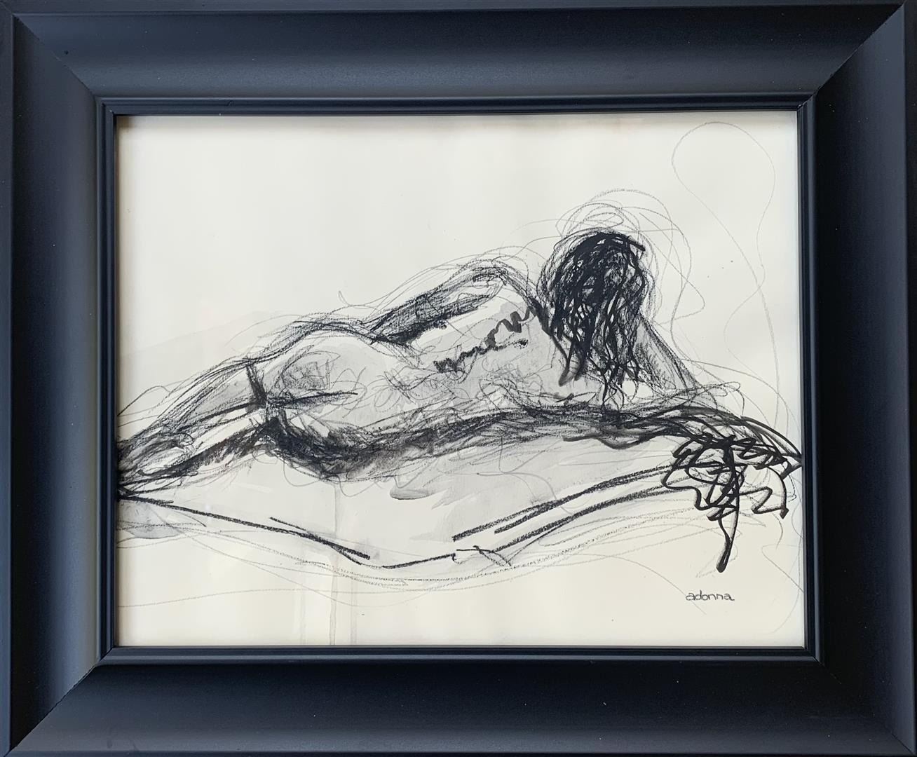 Graphite on paper, framed (black) 18.5" x 15.5" by Adonna framed in black moulding. COA