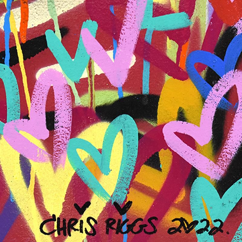 Love By Riggs Original. "Love" is an original spray paint painting on canvas by Chris Riggs, hand signed by the artist. This piece comes gallery wrapped. Includes Letter of Authenticity. Measures approx. 36" x 39" (image).