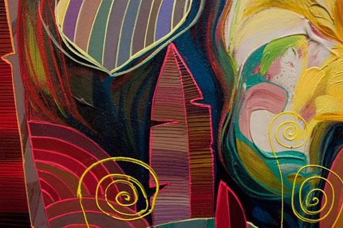 Bright Fun and playful original acrylic on canvas. Hand Signed by artist. This 30x40 artwork comes beautifully framed and ready to hang. 32x42 art size 30x40
