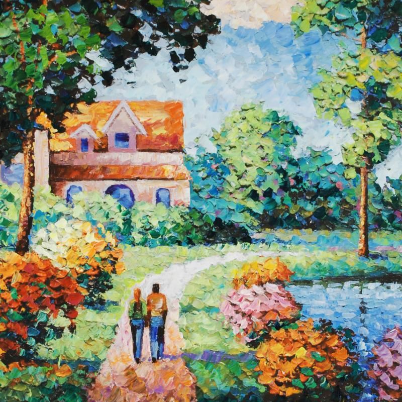 "Love Our Home" is a limited edition hand embellished giclee on canvas, numbered inverso and hand signed by Alexander Antanenka. Includes Certificate of Authenticity! Measures approx. 24" x 24" (image).