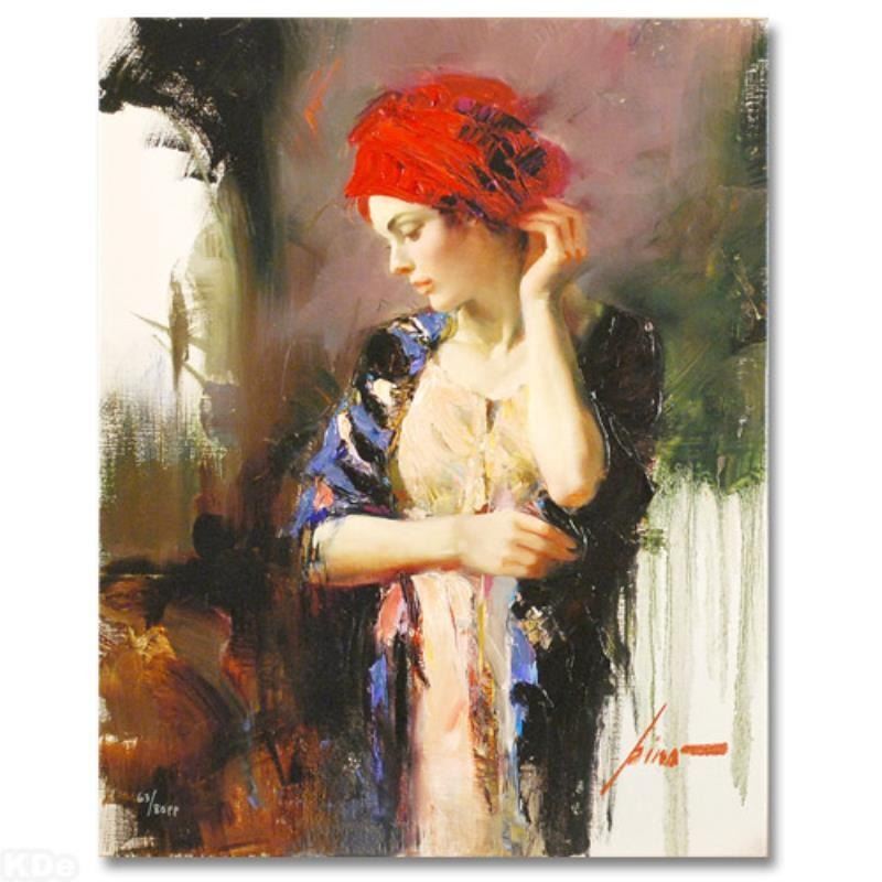 "Harmony," "Love," and "Desire" is a hand embellished 3 piece suite of limited edition giclees on canvas by Pino (1939-2010). Numbered and hand signed. Includes Certificate of Authenticity. Measures approximately 16" x 20" (each piece). This piece is not stretched.