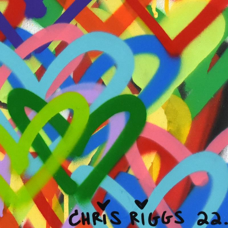 "Love" is an original spray paint painting on canvas by Chris Riggs, hand signed by the artist. This piece comes framed. Includes Letter of Authenticity. Measures approx. 21" x 17" (frame), 20" x 16" (image).