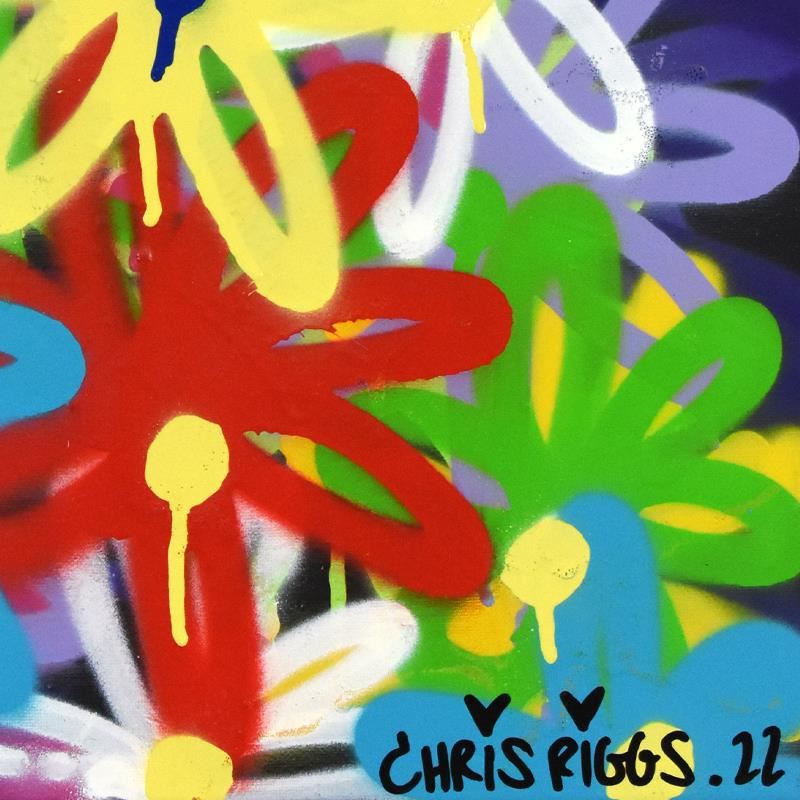 "Love" is an original spray paint painting on canvas by Chris Riggs, hand signed by the artist. This piece comes framed. Includes Letter of Authenticity. Measures approx. 17" x 21" (frame), 16" x 20" (image).
