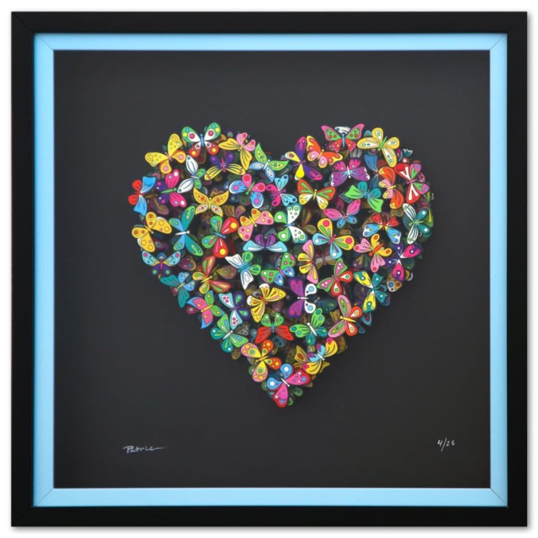 "Love in Paradise" is a limited edition 3D multilayered woodcut by Patricia Govezensky. Hand signed and numbered out Paradise only 25 pieces, this pece comes framed and with a letter of authenticity. Measures approximately 20" x 20" (framed), 12" x 12" (piece).