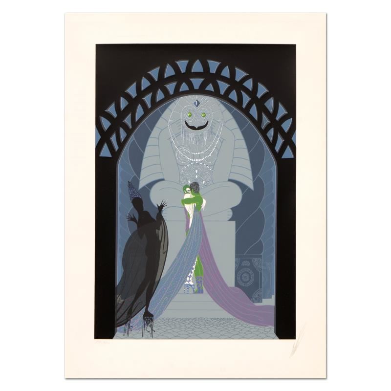 Lovers and Idol By Erte (1892-1990). "Lovers and Idol" is a limited edition serigraph on paper by Erte (1892-1990), numbered and hand signed by the artist. Includes Certificate of Authenticity. Measures approx. 17" x 23" (border), 13" x 19" (image). Due to the age of this piece and the delicate nature of the paper it may have some slight imperfections.