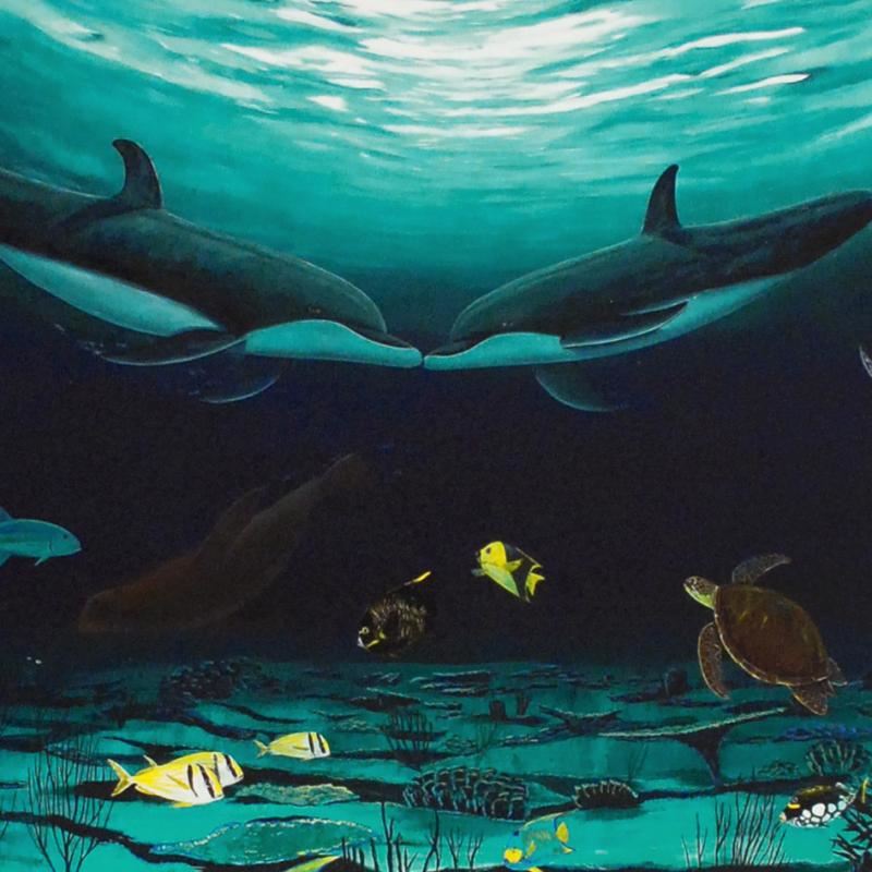 Journey into a world of lifelike imagery and captivating color with this breathtaking collaboration between artists Guy Harvey and Wyland! "Loving Sea" is a limited edition giclee on canvas. Numbered and hand signed by Wyland! Includes Certificate of Authenticity! Measures approx. 42" x 22.5" (image).