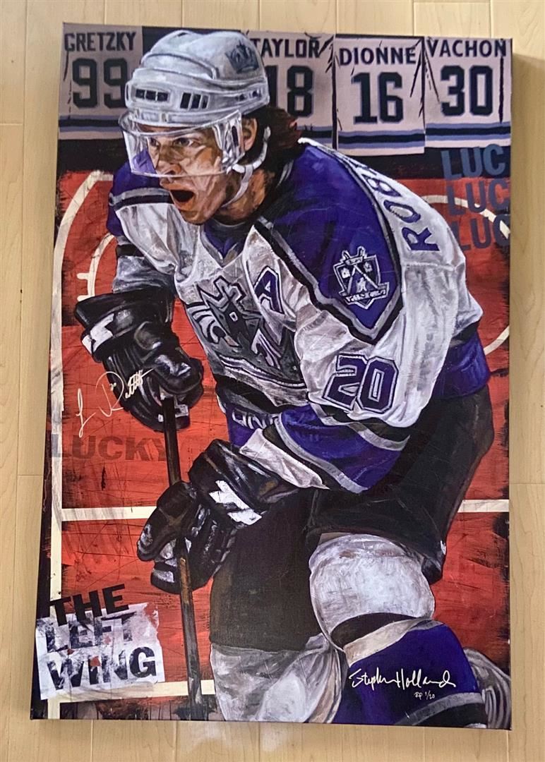 A stretched giclee on canvas, hand signed by the Luc Robittaille & by artist Stephen Holland 41.5x27.5" with Authen. Certificate