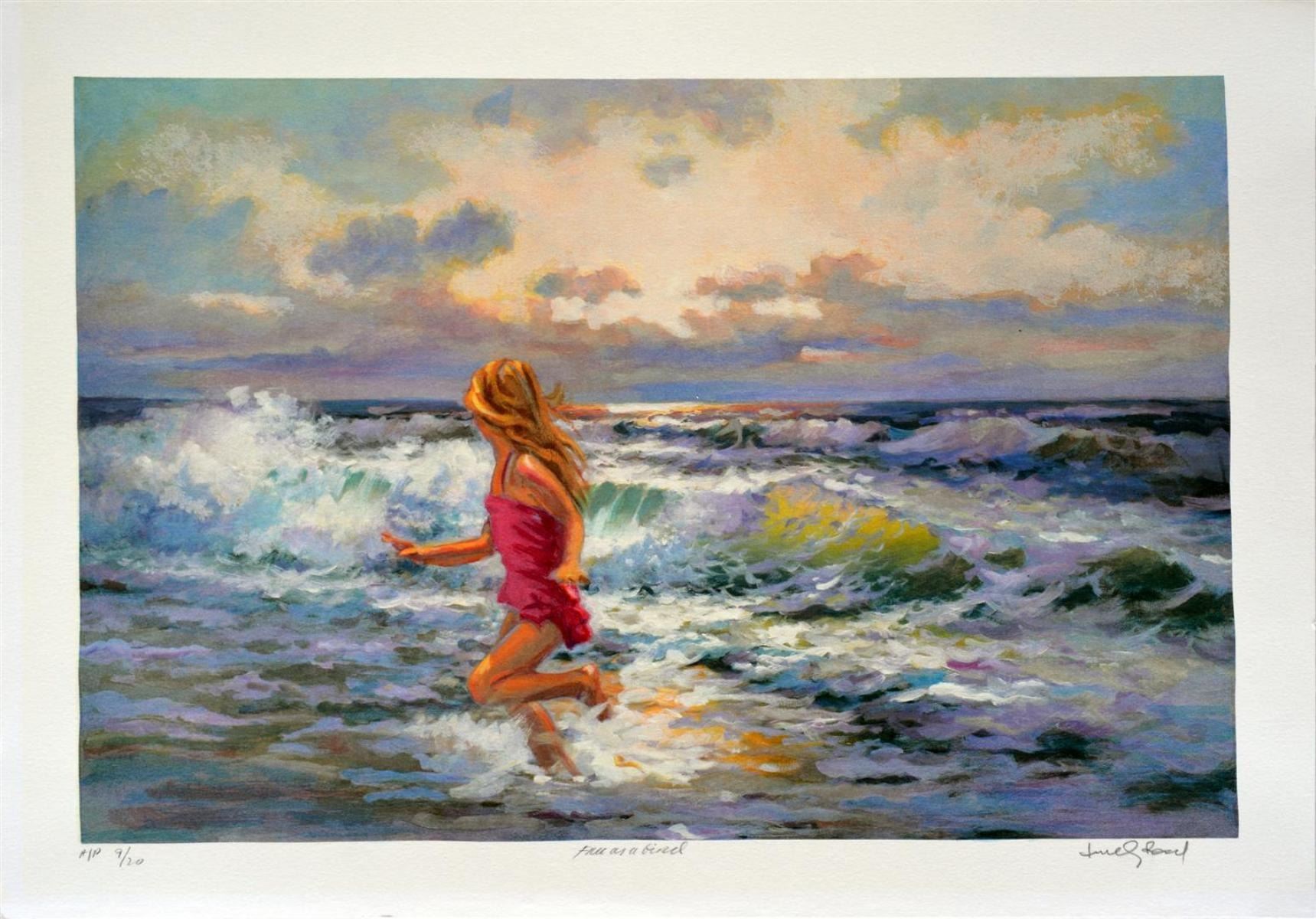 Artist: Lucelle Raad (b. 1942) - Title: Free as a Bird - Medium: Serigraph on Fine Art Paper - Signature: Hand-signed by the Artist - Limited Edition: AP 20 - Image Size: Approximately 11.5 Inches x 17.5 inches - Paper Size: Approximately 14 inches x 20 inches - Unframed - Details: This work comes with a Certificate of Authenticity - Biography: Many are touched by Lucelle's blending of the hopeful innocence of children in a commonplace setting. Each case awakens nostalgia for that youthful honesty and simplicity in all that view her work. The recipient of multiple awards, her most prized award was received at the world famous Washington Square Art Exhibit, an annual event in New York which is an invitational, juried show with over 500 artists from every corner of the globe. Lucelle's art graces many corporate, public, and private collections in every state in the union and in countries around the world.