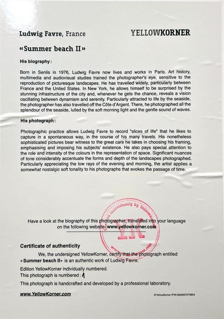 Ludwin Favre France Summer Beach II YellowKorner Certified Photograph. Certificate of Authenticity from YellowKorner affixed to the back. Matted Dimensions 16"x20". Protected with Clear Mylar Sleeve.