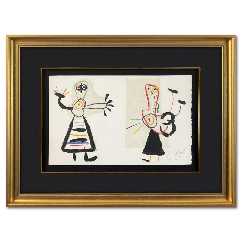 "M. 1015 from L'enfance d'Ubu" is a limited edition lithograph on Velin Arches paper. This piece is hand signed by Joan Miro (1893-1983). The suite portfolio that this piece comes from is numbered but the piece itself is not numbered. This piece comes custom framed. Includes Certificate of Authenticity. Measures approx. 31" x 24" (frame), 19.5" x 12.5" (image).