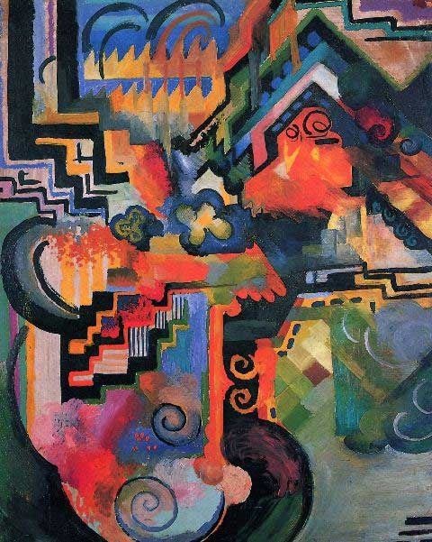 Artist: MACKE - Title: Colored Composition (Hommage Sebastin Johann Bach) - Medium: Fine Art Reproduction Giclee on Canvas - Image Size: Approximately 20 inches x 16 inches - Unframed on Unstretched Canvas - Biography: MACKE (3 January 1887 - 26 September 1914) was a German Expressionist painter. He was one of the leading members of the German Expressionist group Der Blaue Reiter (The Blue Rider). He lived during a particularly innovative time for German art: he saw the development of the main German Expressionist movements as well as the arrival of the successive avant-garde movements which were forming in the rest of Europe. Like a true artist of his time, MACKE knew how to integrate into his painting the elements of the avant-garde which most interested him.