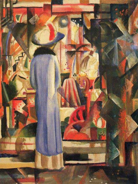 Artist: MACKE - Title: Large Bright Showcase - Medium: Fine Art Reproduction Giclee on Canvas - Image Size: Approximately 20 inches x 15 inches - Unframed on Unstretched Canvas - Biography: MACKE (3 January 1887 - 26 September 1914) was a German Expressionist painter. He was one of the leading members of the German Expressionist group Der Blaue Reiter (The Blue Rider). He lived during a particularly innovative time for German art: he saw the development of the main German Expressionist movements as well as the arrival of the successive avant-garde movements which were forming in the rest of Europe. Like a true artist of his time, MACKE knew how to integrate into his painting the elements of the avant-garde which most interested him.