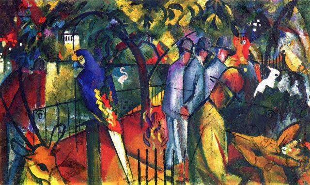 Artist: MACKE - Title: Zoological Gardens - Medium: Fine Art Reproduction Giclee on Canvas - Image Size: Approximately 12 inches x 20 inches - Unframed on Unstretched Canvas - Biography: MACKE (3 January 1887 - 26 September 1914) was a German Expressionist painter. He was one of the leading members of the German Expressionist group Der Blaue Reiter (The Blue Rider). He lived during a particularly innovative time for German art: he saw the development of the main German Expressionist movements as well as the arrival of the successive avant-garde movements which were forming in the rest of Europe. Like a true artist of his time, MACKE knew how to integrate into his painting the elements of the avant-garde which most interested him.