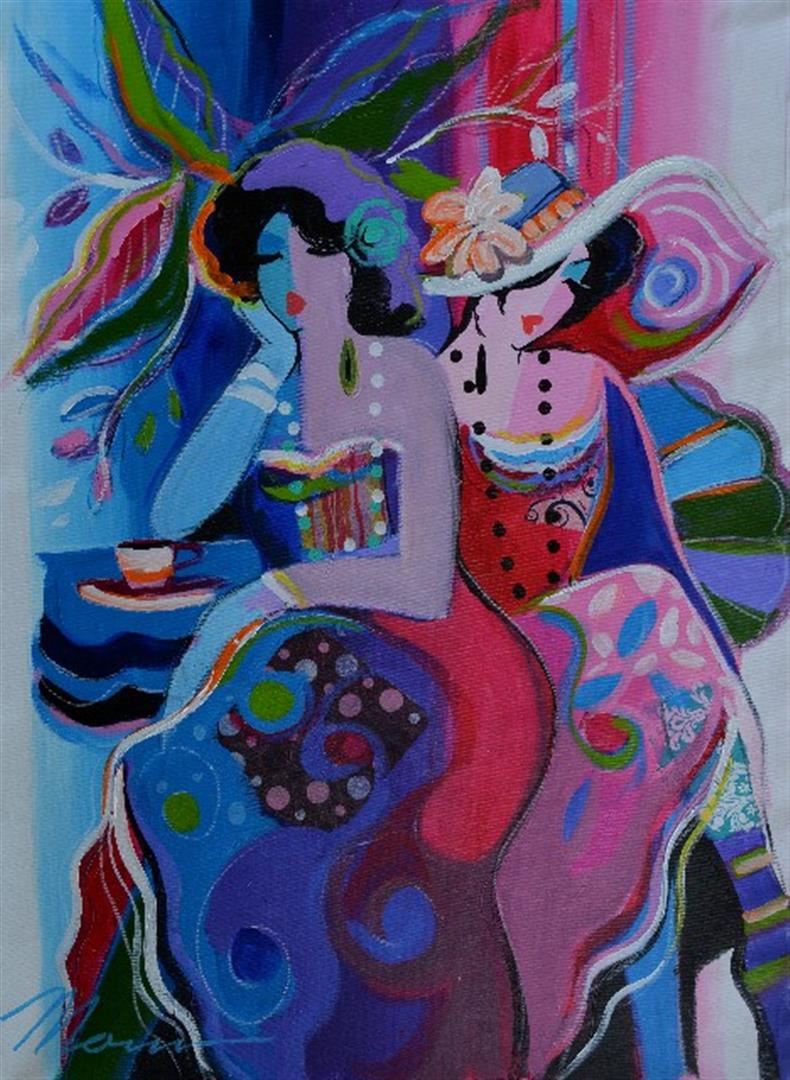 Artist: Isaac Maimon (b. 1951) - Title: Women at Leisure - Medium: Original Acrylic on Canvas - Signature: This one-of-a-kind work is hand-signed by the artist at the bottom of the image - Image Size: Approximately 40 inches x 30 inches - Unframed on Unstretched Canvas - Details: This work comes with a Certificate of Authenticity - Biography: Born in Israel in 1951, to French speaking parents, he exhibited an early artistic ability that was enthusiastically supported by his family. Maimon attended the Avni Institute of Fine Art in Tel Aviv, the most prestigious academy for the arts in Israel. This is where his initial interest in the Paris school was cultivated. - In 1980, Maimon began teaching at the School of Visual Arts in Beer-Sheba and later that year the Kaye Art Academy. In the late 80's he was a professor at the Ben-Gurion University in Beer-Sheba. His works have been and continue to be exhibited throughout the world. -