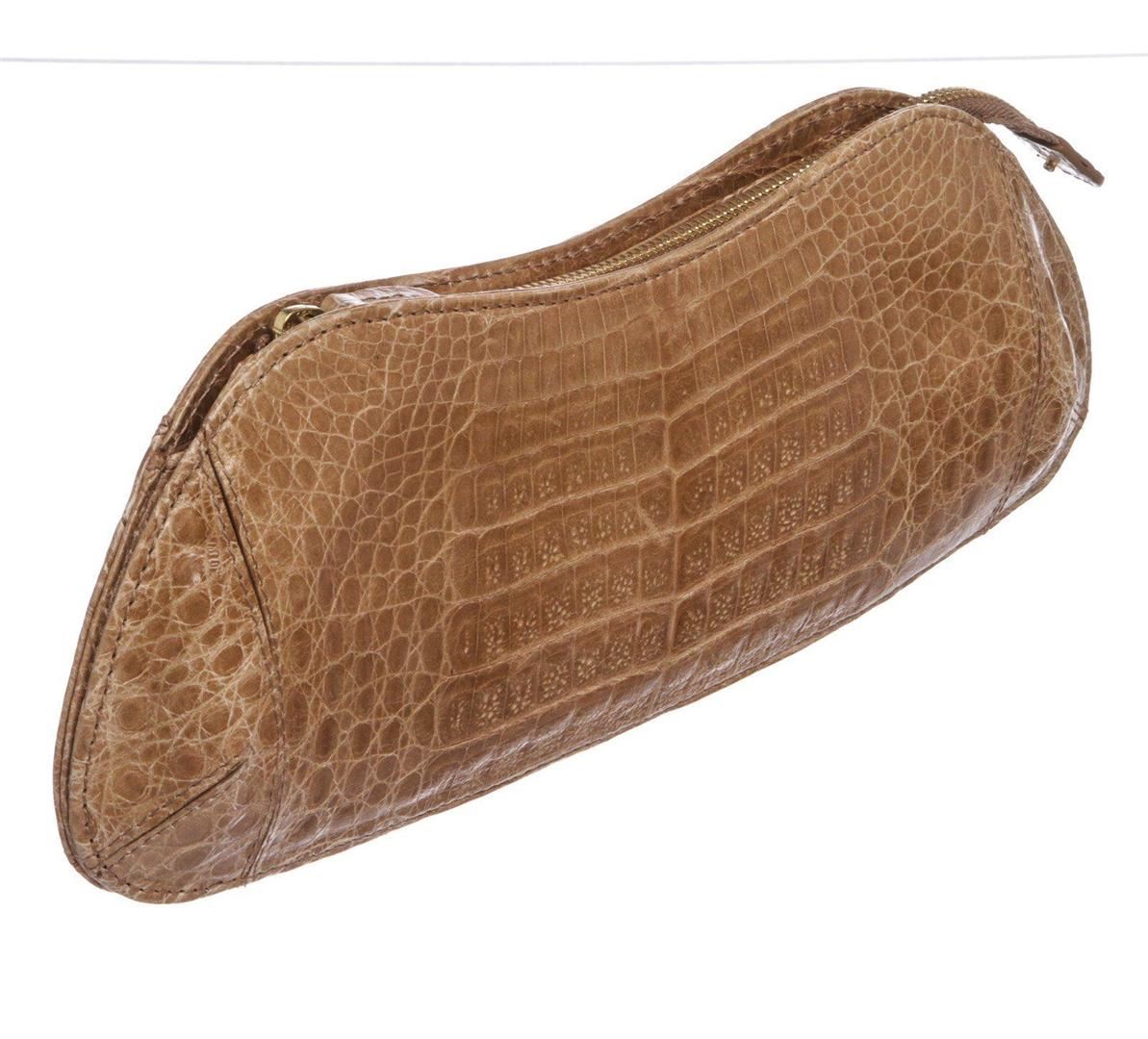 Beige crocodile MCM evening clutch with gold tone hardware, leather interior lining, zipper pocket at interior wall and a overall zipper closure. MEASUREMENTS: 13 13 in / 33 cm 1.75 1.75 in / 4 cm 5 5 in / 13 cm Condition: Pre-Owned Good Good overall, please see photographs for details.
