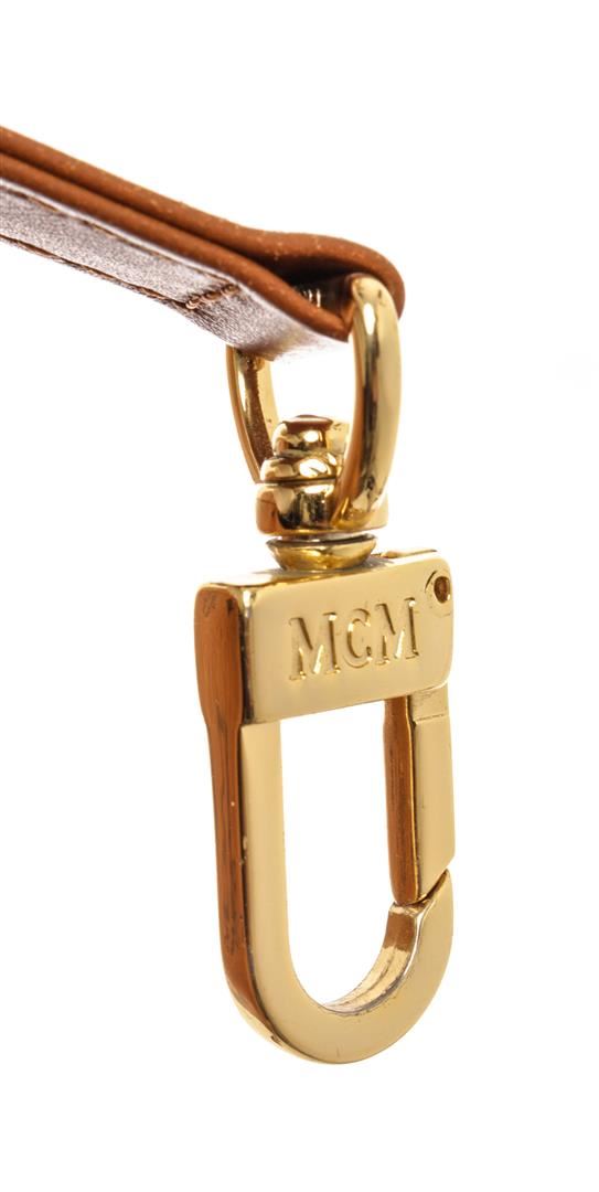 MCM Brown Visetos Leather-Trimmed Tote Bag. All available information is listed in the description and shown in the photos. MCM Brown Canvas Visetos Two Way Boston Bag with rolled leather top handles with polished gold hardware and an optional shoulder strap, The top zipper opens to a brown fabric interior with zipper and patch pockets. 86798 length: 12.00 in, Height: 8.50 in, Width: 6.50 in /30.48 x 21.59 x 16.51 CM