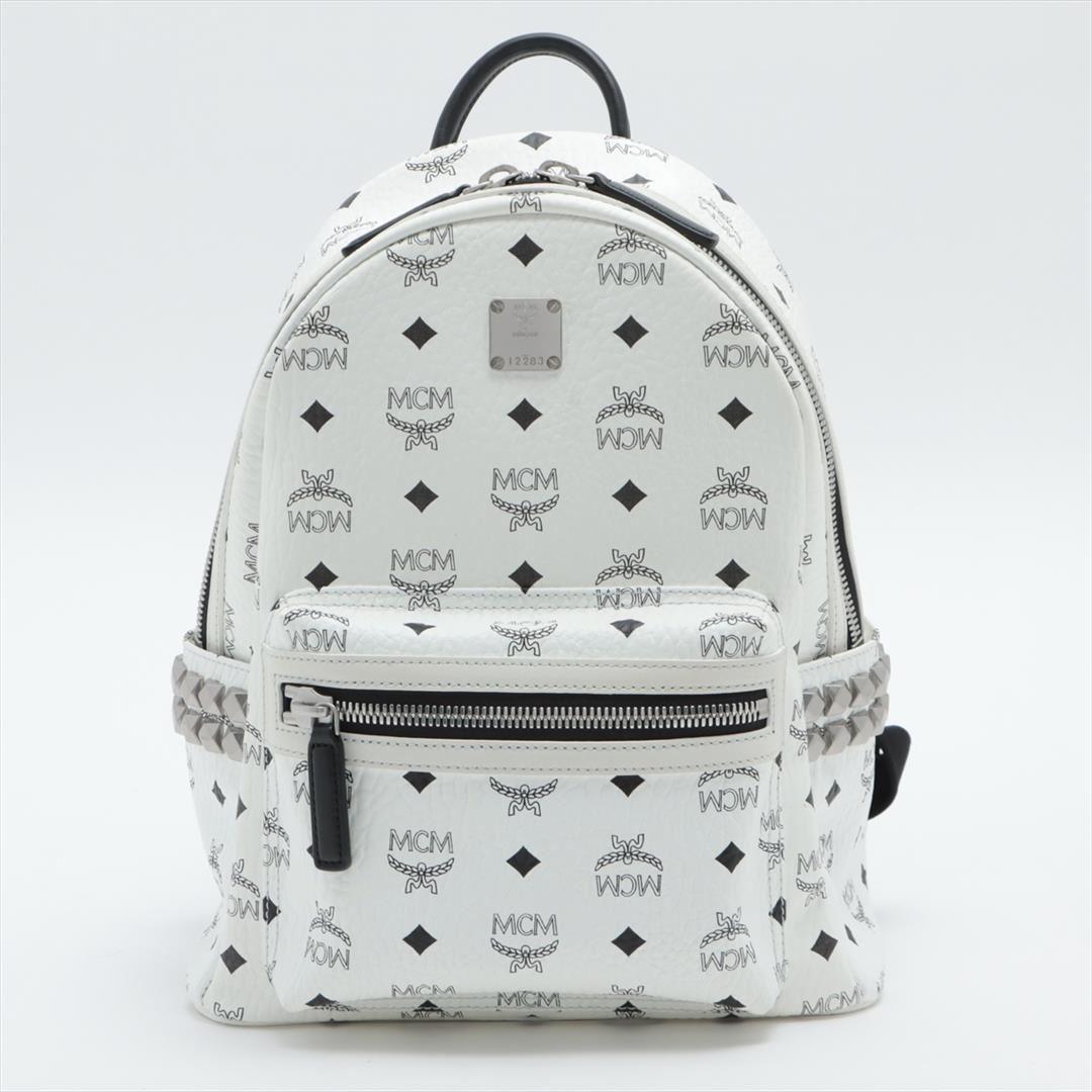 MCM White Monogram Visetos Canvas Leather Studs Stark Backpack