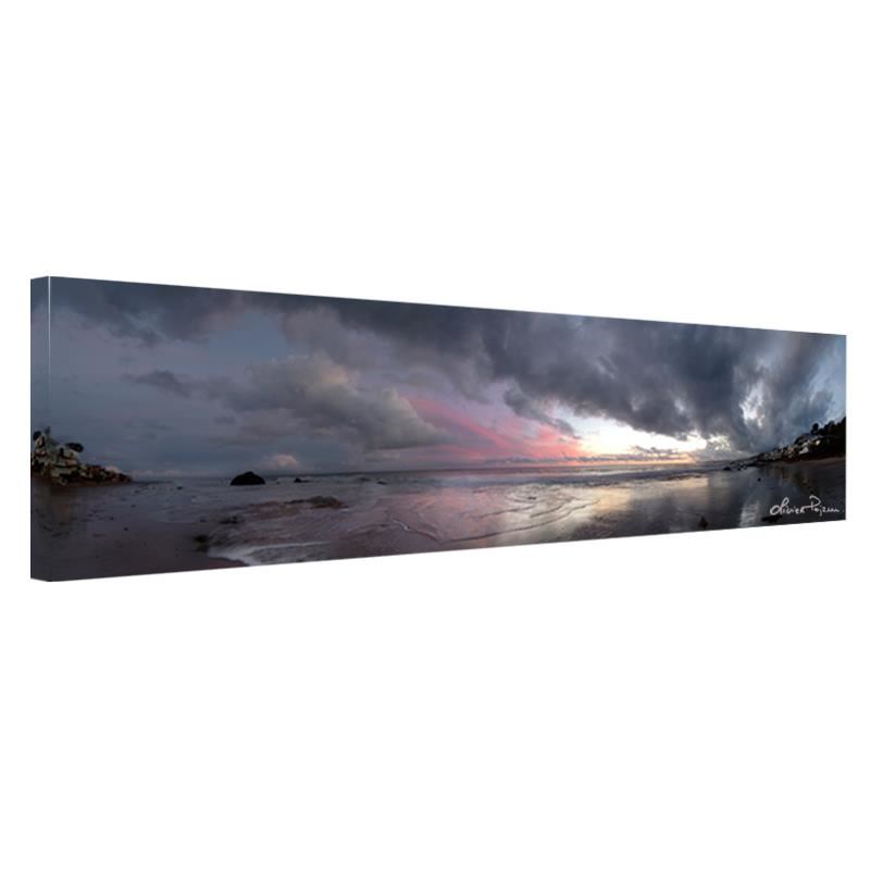 With a unique eye and talent, Olivier Pojzman captivates his audience through imagery. "Malibu Colony" is a limited edition giclee on canvas. It is numbered and hand-signed by the artist and includes a Certificate of Authenticity. This piece comes gallery wrapped, ready for display. Measures approx. 40" x 12" (image).