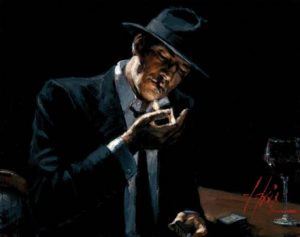 A classic Fabian Perez image of a gentleman caller waiting on her. 14x17.5" on LE Canvas stretched-Giclee.