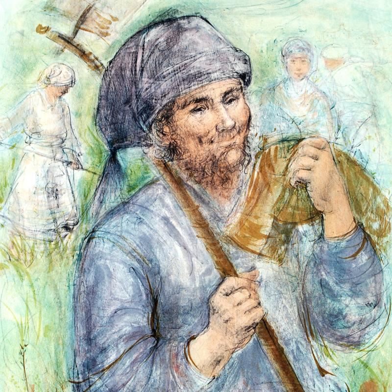"Man with Hoe" is a limited edition lithograph on paper, numbered and hand signed by Edna Hibel (1917-2014). Includes Certificate of Authenticity! Measures approx. 30" x 41.5" (with border), 28" x 39" (image).