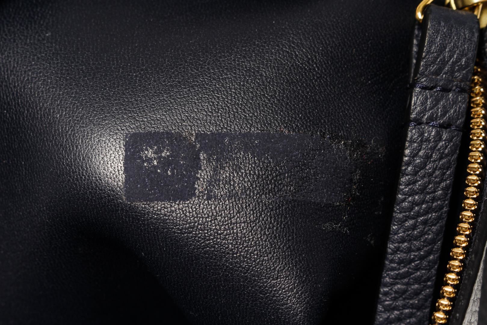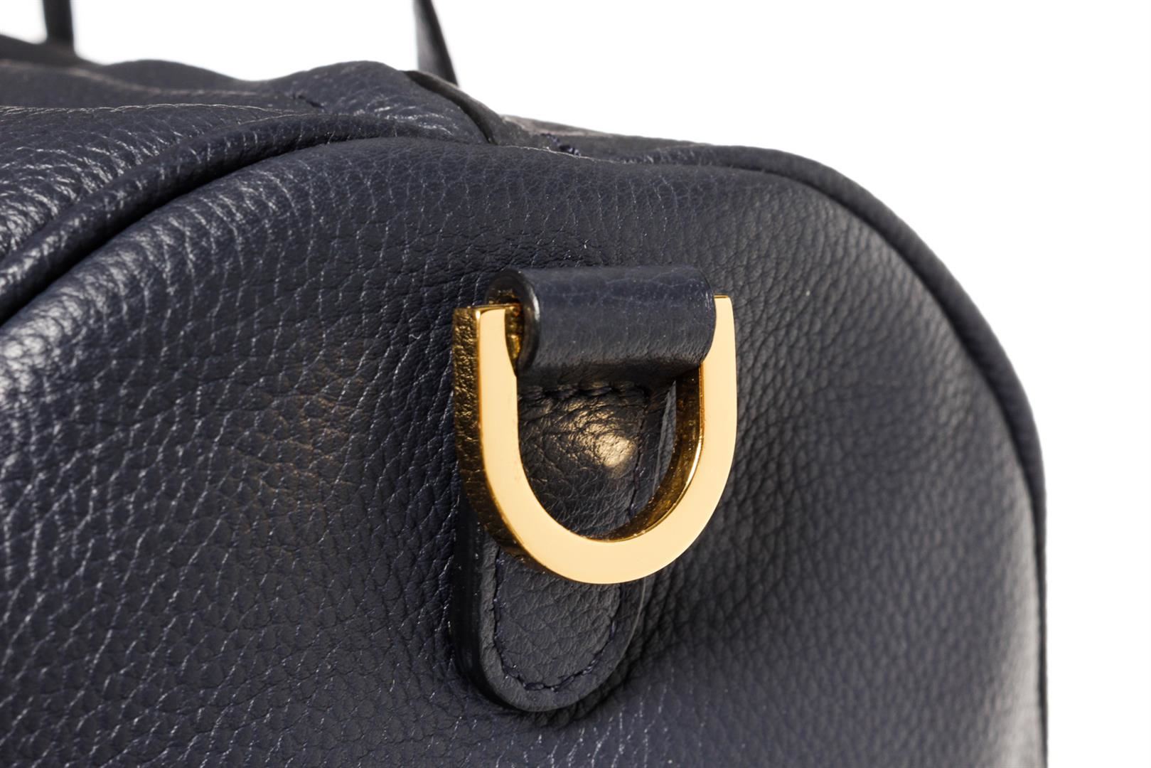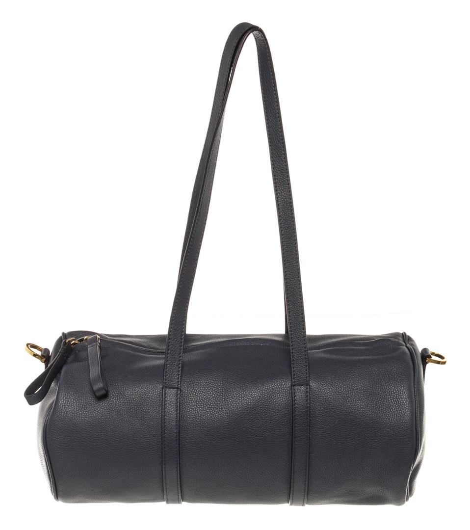 Mansur Gavriel Mini Duffle crossbody bag is crafted in navy blue Lambskin leather, gold-tone hardware, a long adjustable long leather strap that can be detachable, two top flat handles, two-way zip closure at top and black leather 8.5" L x 4" W x 4" H,