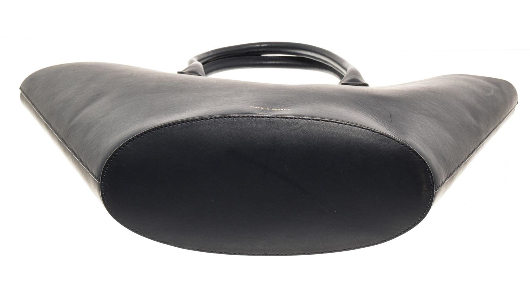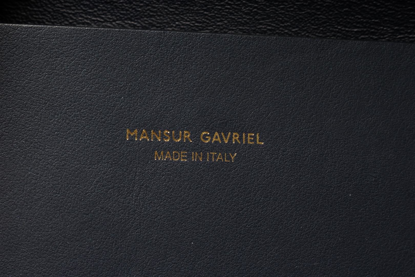 Mansur Gavriel Navy Blue Leather Triangle Handbag. All available information is listed in the description and shown in the photos. Mansur Gavriel Navy Blue Leather Triangle Handbag with Red Leather Interior, Inside Slip Pocket, Dual Leather Top Handles, and an Open Top. .