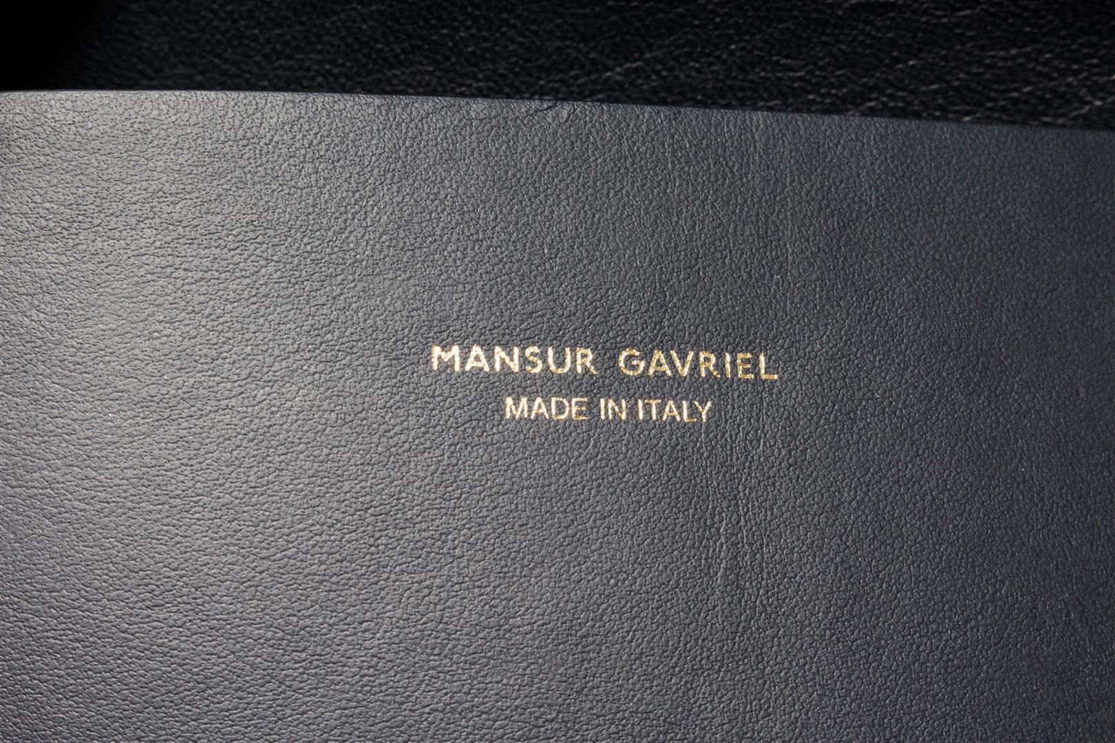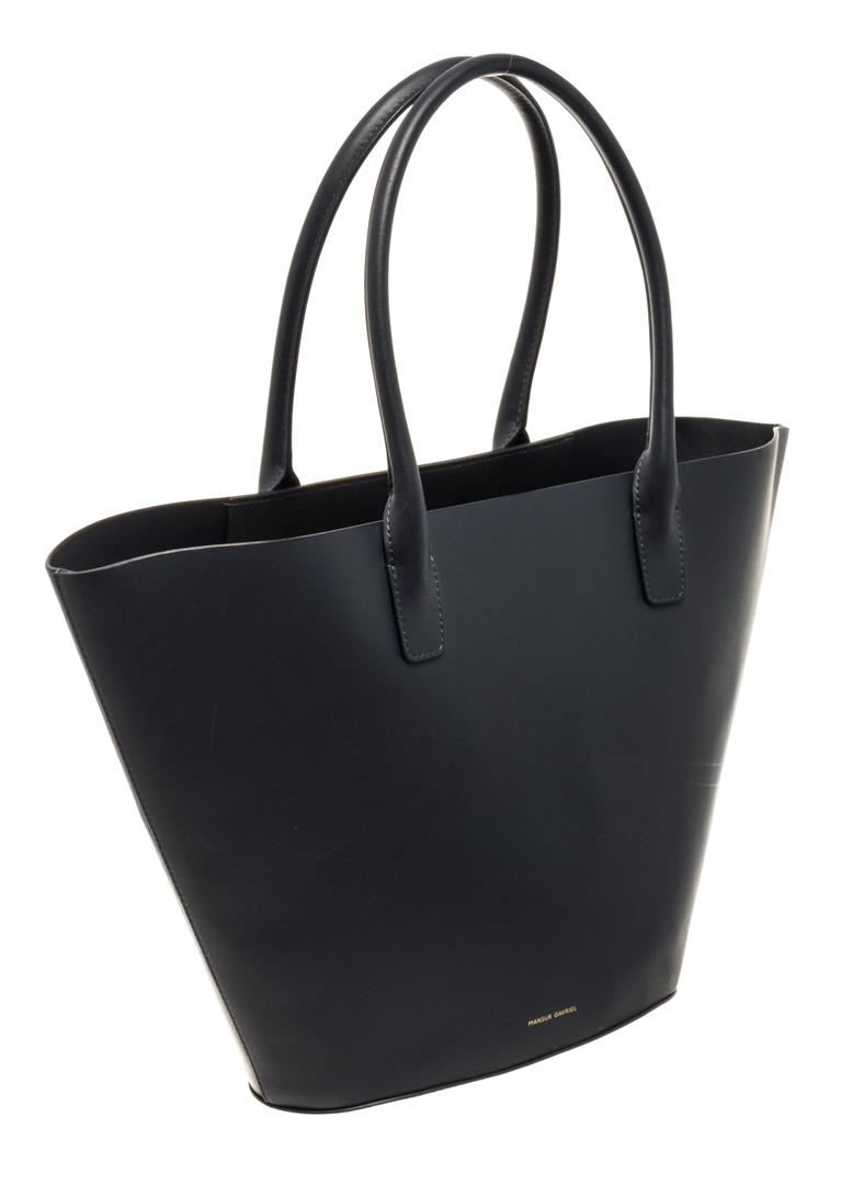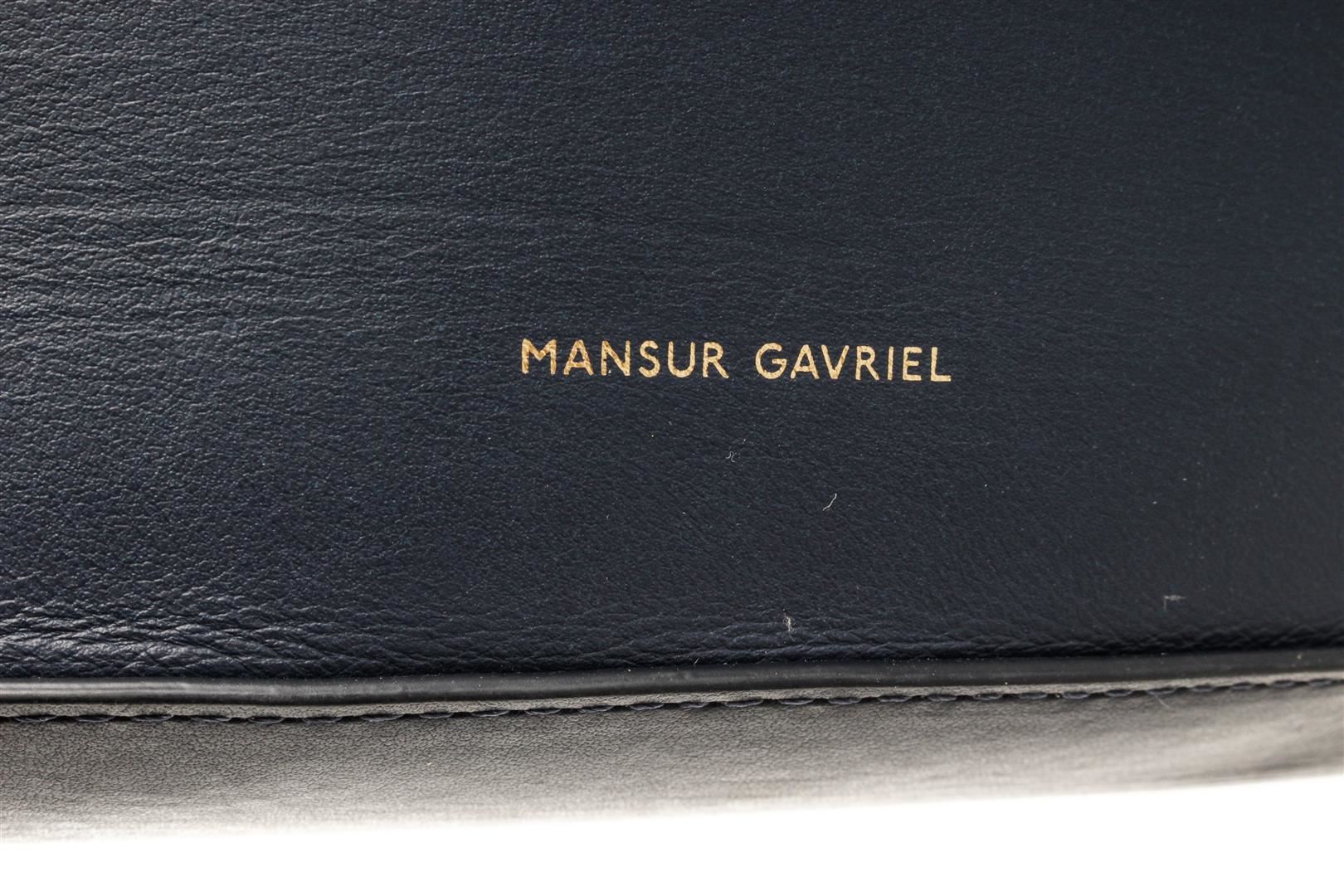 Mansur Gavriel Navy Blue Leather Triangle Handbag. All available information is listed in the description and shown in the photos. Mansur Gavriel Navy Blue Leather Triangle Handbag with Red Leather Interior, Inside Slip Pocket, Gold-tone Logo Embossed, Dual Leather Top Handles, and an Open Top. .
