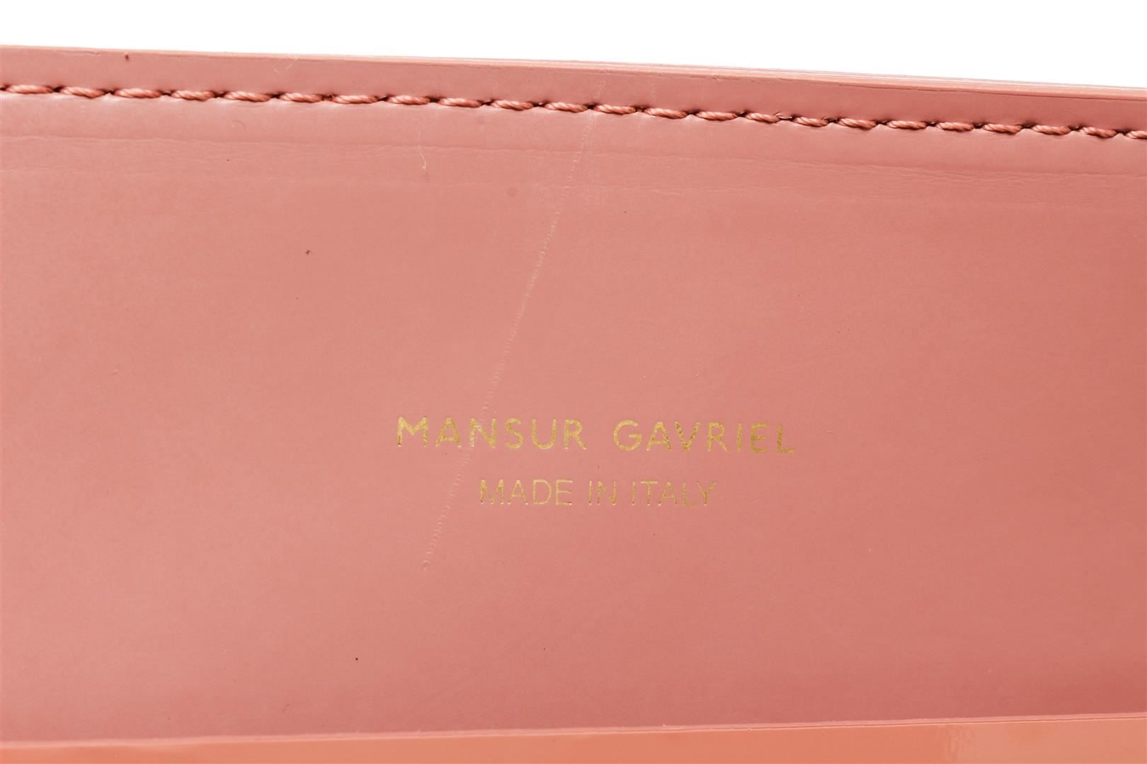 Mansur Gavriel Pink Patent Leather Bow Accent Sun Tote Handbag. All available information is listed in the description and shown in the photos. Mansur Gavriel Pink Patent Leather Bow Accent Sun Tote Handbag with Gold-tone Hardware, Leather Lining, Interior Slip Pocket, Outer Leather Bow, Dual Rolled Top Handles, and an Open Top. .